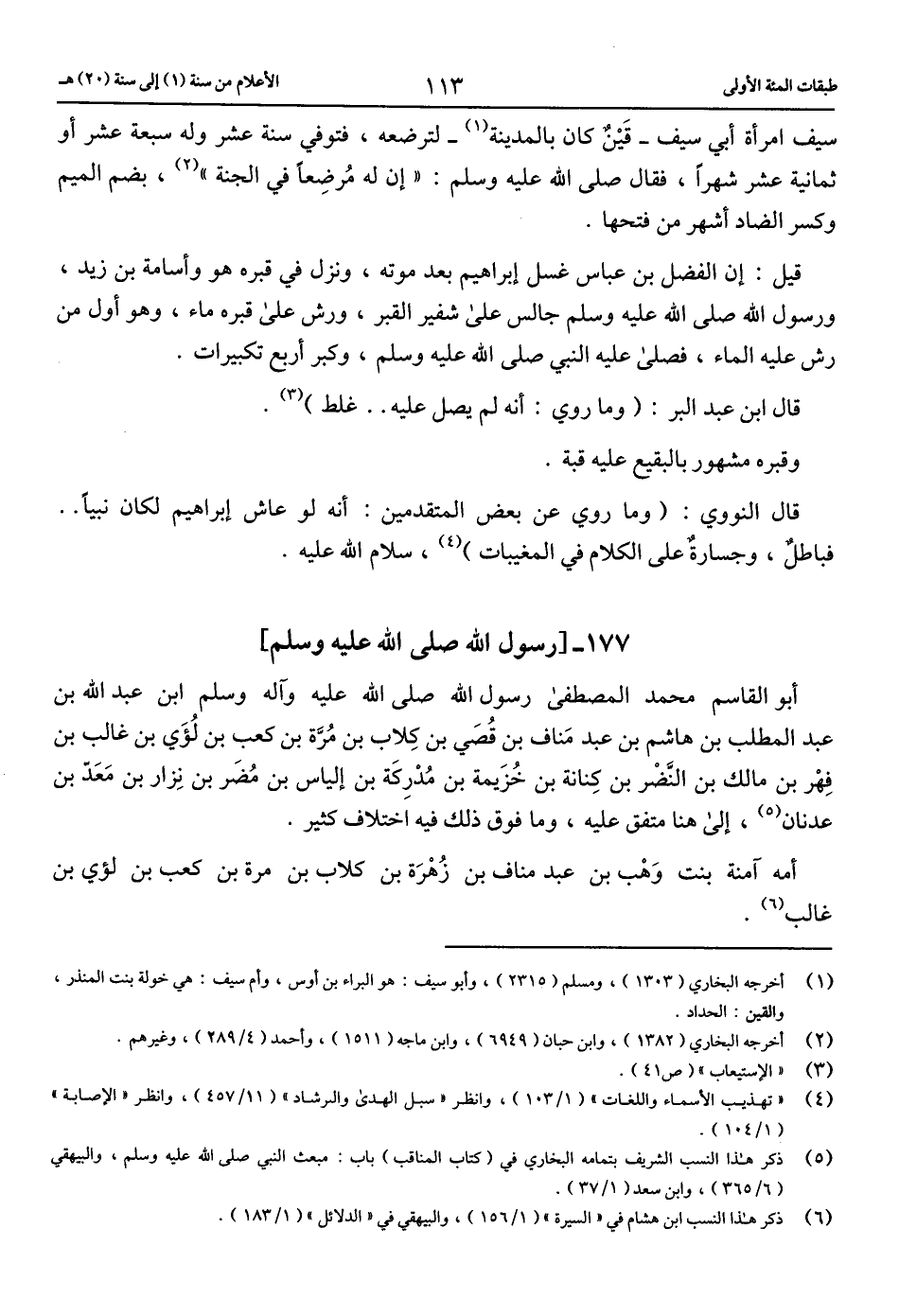 (5) ذكر هذا النسب الشريف بتمامه البخاري في (كتاب المناقب) باب: مبعث النبي صلّى الله عليه وسلم، والبيهقي (6/ 365)، وابن سعد (1/ 37).