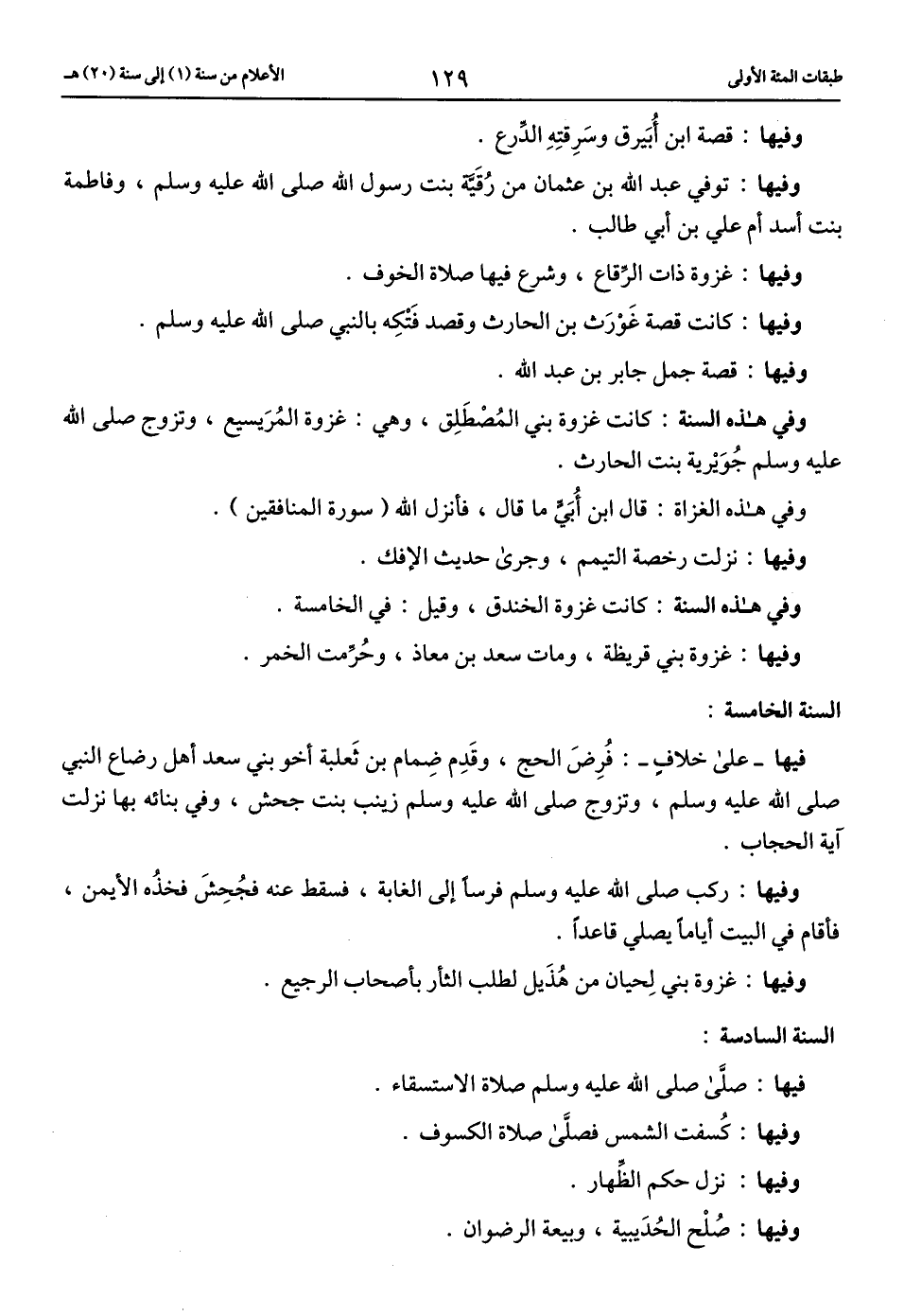 وفيها: غزوة بني قريظة، ومات سعد بن معاذ، وحرّمت الخمر.
