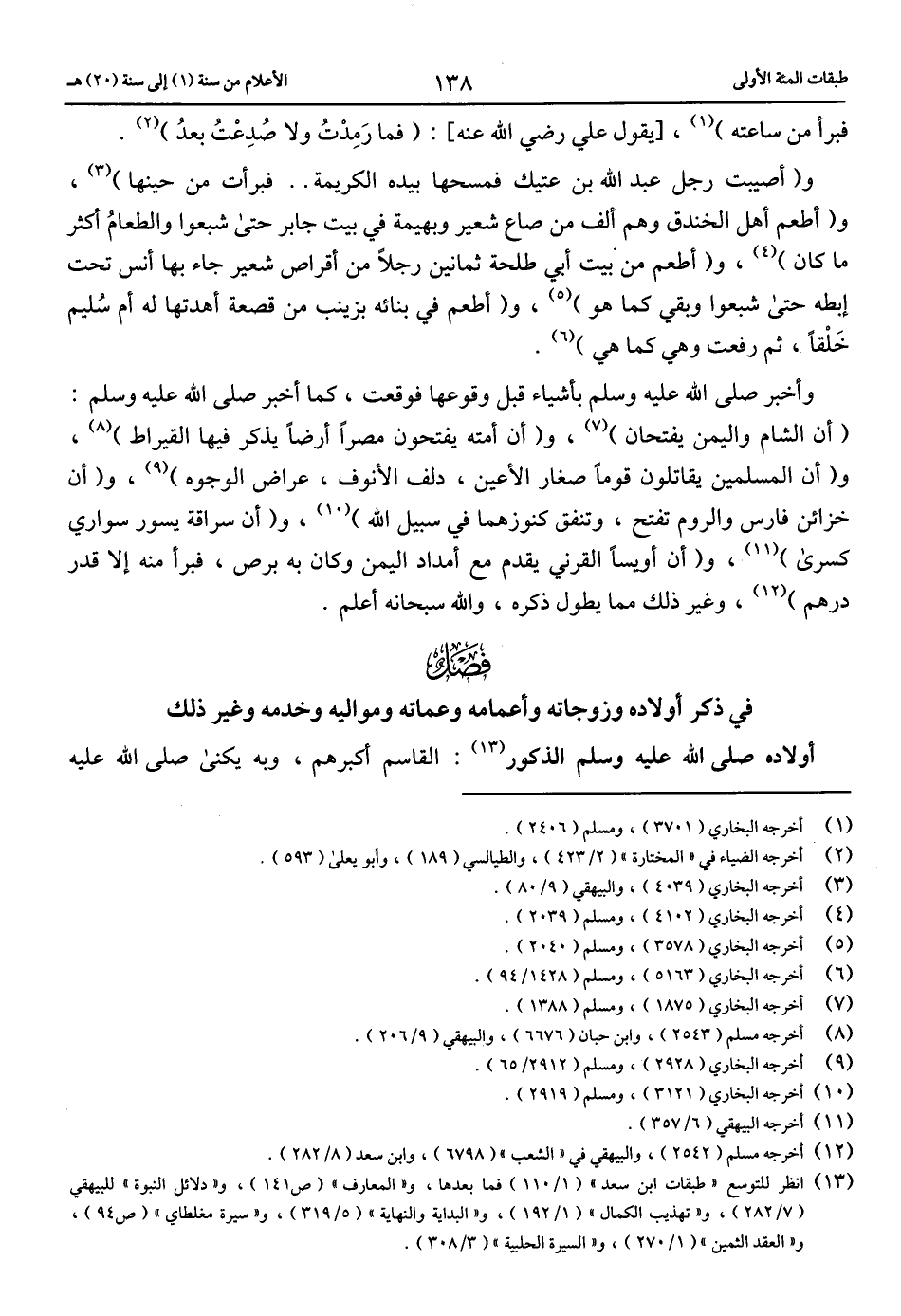 (13) انظر للتوسع «طبقات ابن سعد» (1/ 110) فما بعدها، و «المعارف» (ص 141)، و «دلائل النبوة» للبيهقي (7/ 282)، و «تهذيب الكمال» (1/ 192)، و «البداية والنهاية» (5/ 319)، و «سيرة مغلطاي» (ص 94)، و «العقد الثمين» (1/ 270)، و «السيرة الحلبية» (3/ 308).