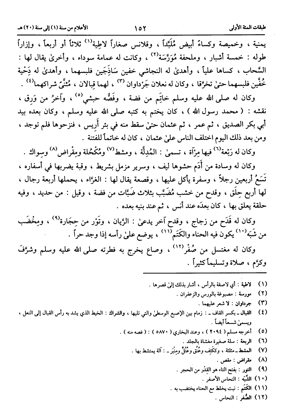 وكان له ربعة (6) فيها مرآة، تسمى: المدلّة، ومشط (7) ومكحلة ومقراض (8) وسواك.