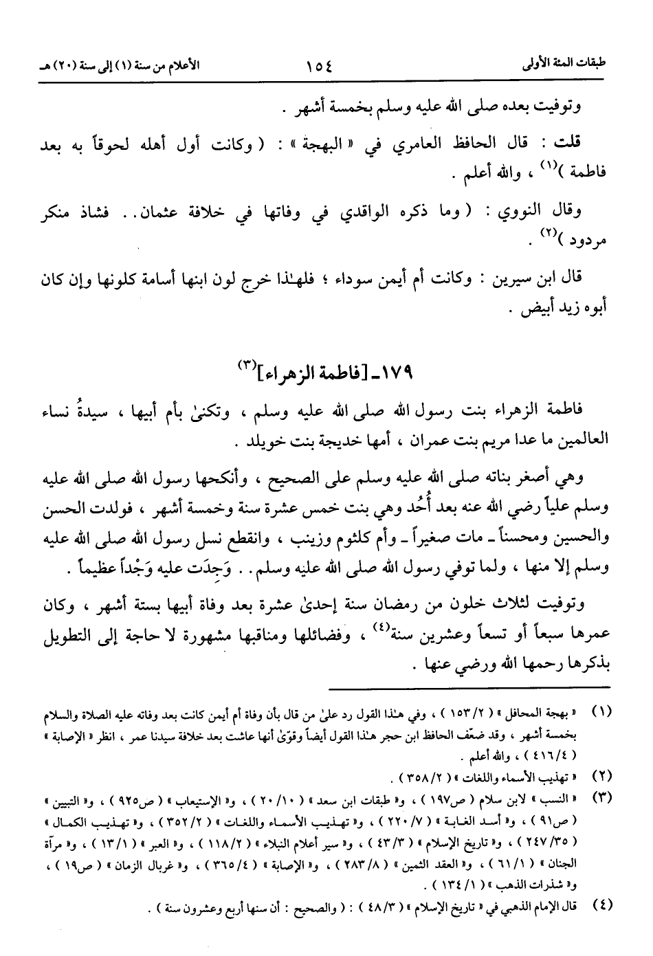 (1) «بهجة المحافل» (2/ 153)، وفي هذا القول رد على من قال بأن وفاة أم أيمن كانت بعد وفاته عليه الصلاة والسلام بخمسة أشهر، وقد ضعّف الحافظ ابن حجر هذا القول أيضا وقوّى أنها عاشت بعد خلافة سيدنا عمر، انظر «الإصابة» (4/ 416)، والله أعلم.