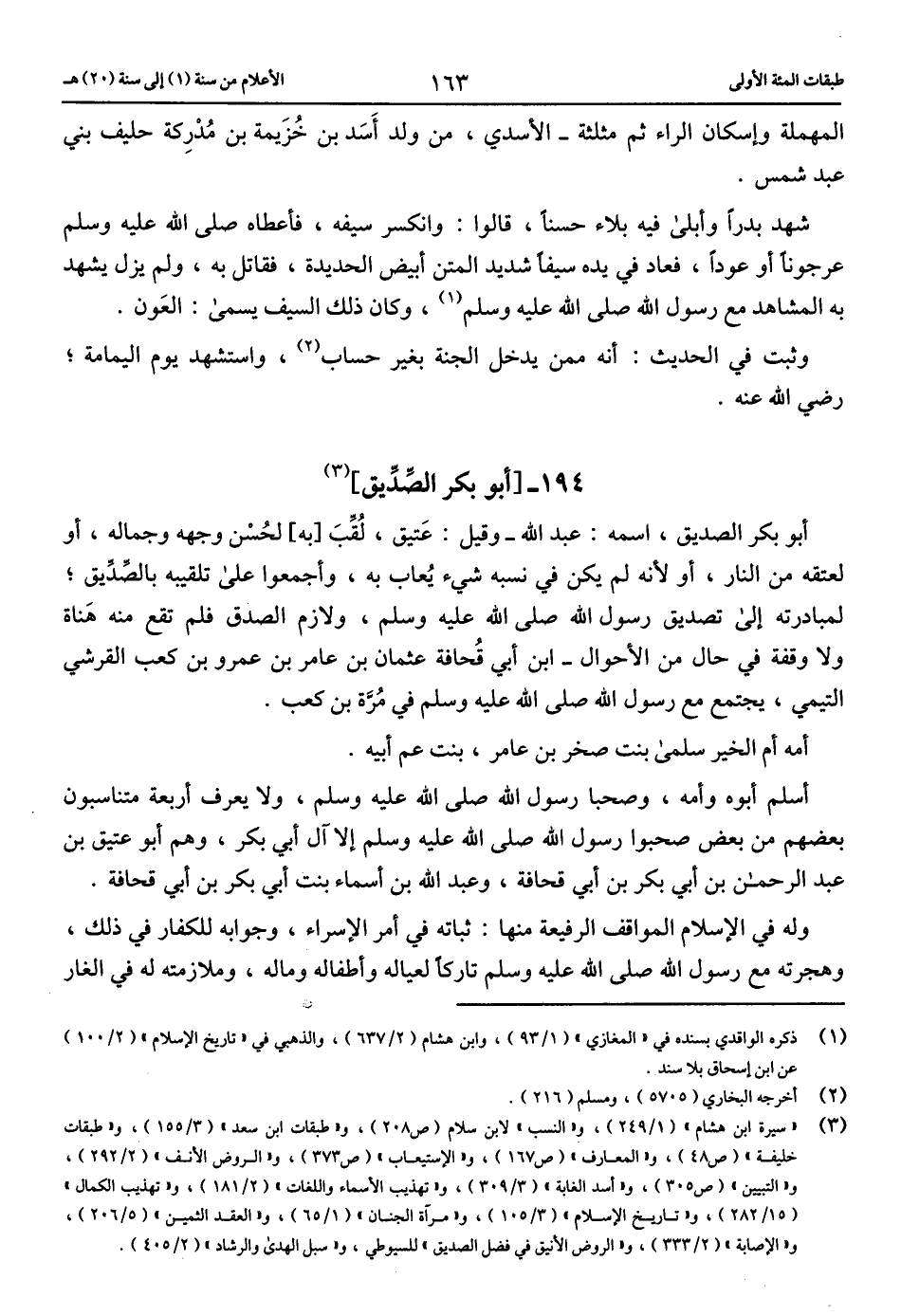 (3) «سيرة ابن هشام» (1/ 249)، و «النسب» لابن سلام (ص 208)، و «طبقات ابن سعد» (3/ 155)، و «طبقات خليفة» (ص 48)، و «المعارف» (ص 167)، و «الاستيعاب» (ص 373)، و «الروض الأنف» (2/ 292)، و «التبيين» (ص 305)، و «أسد الغابة» (3/ 309)، و «تهذيب الأسماء واللغات» (2/ 181)، و «تهذيب الكمال» (15/ 282)، و «تاريخ الإسلام» (3/ 105)، و «مرآة الجنان» (1/ 65)، و «العقد الثمين» (5/ 206)، و «الإصابة» (2/ 333)، و «الروض الأنيق في فضل الصديق» للسيوطي، و «سبل الهدى والرشاد» (2/ 405).