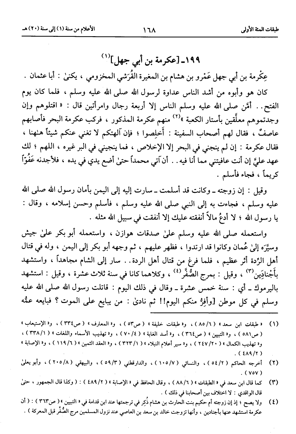 (4) ولا يصح؛ إذ إن زوجته أم حكيم بنت الحارث بن هشام ذكر في ترجمتها عند ابن قدامة في «التبيين» (ص 363): (أن عكرمة استشهد عنها بأجنادين، وأنها تزوجت خالد بن سعد بن العاصي عند نزول المسلمين مرج الصّفّر قبل المعركة).