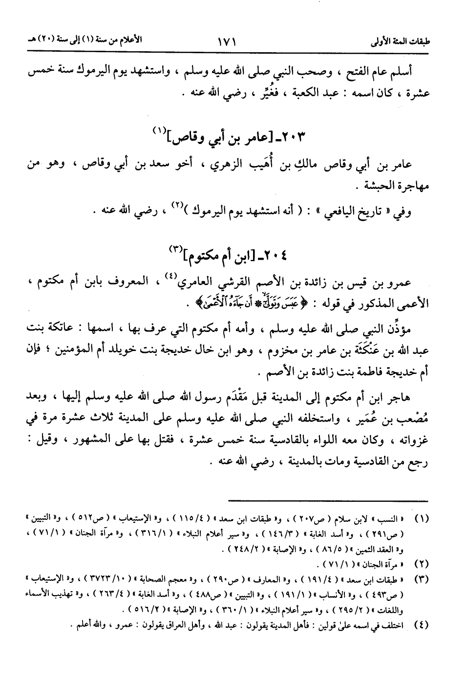 (3) «طبقات ابن سعد» (4/ 191)، و «المعارف» (ص 290)، و «معجم الصحابة» (10/ 3723)، و «الاستيعاب» (ص 493)، و «الأنساب» (1/ 191)، و «التبيين» (ص 488)، و «أسد الغابة» (4/ 263)، و «تهذيب الأسماء واللغات» (2/ 295)، و «سير أعلام النبلاء» (1/ 360)، و «الإصابة» (2/ 516).