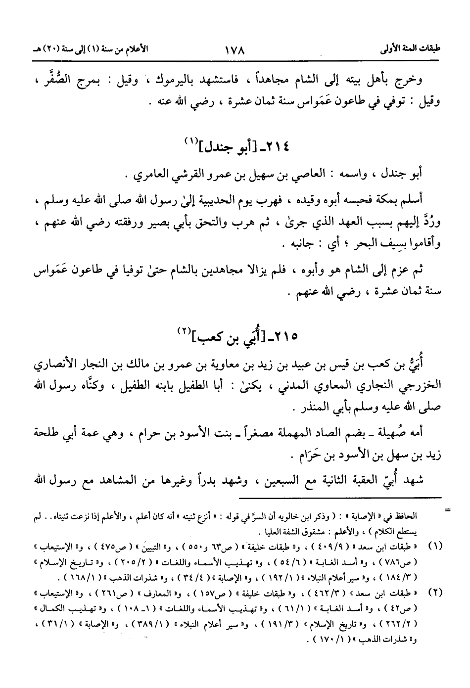 (1) «طبقات ابن سعد» (9/ 409)، و «طبقات خليفة» (ص 63 و 550)، و «التبيين» (ص 475)، و «الاستيعاب» (ص 786)، و «أسد الغابة» (6/ 54)، و «تهذيب الأسماء واللغات» (2/ 205)، و «تاريخ الإسلام» (3/ 184)، و «سير أعلام النبلاء» (1/ 192)، و «الإصابة» (4/ 34)، و «شذرات الذهب» (1/ 168).