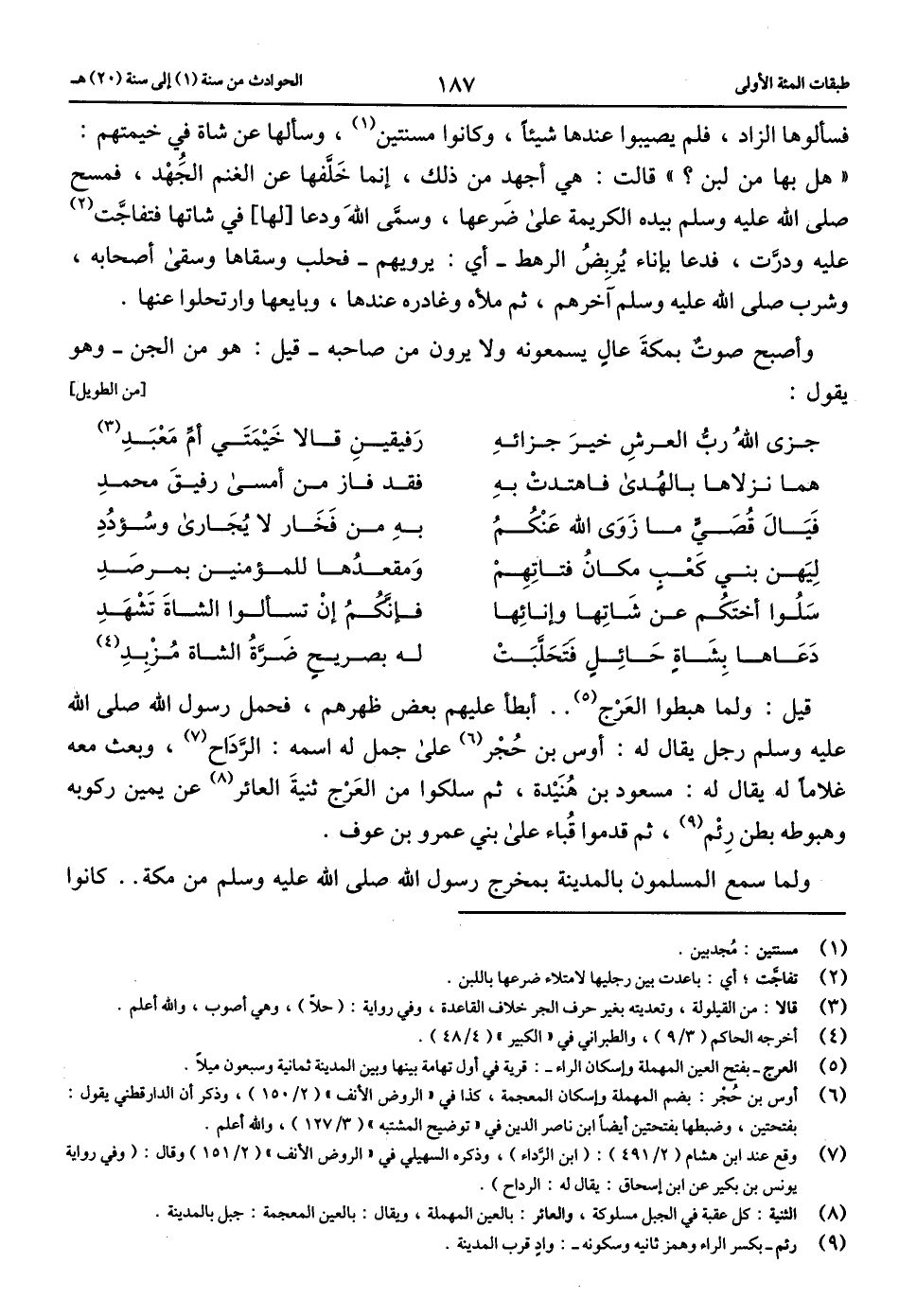 (5) العرج-بفتح العين المهملة وإسكان الراء-: قرية في أول تهامة بينها وبين المدينة ثمانية وسبعون ميلا.