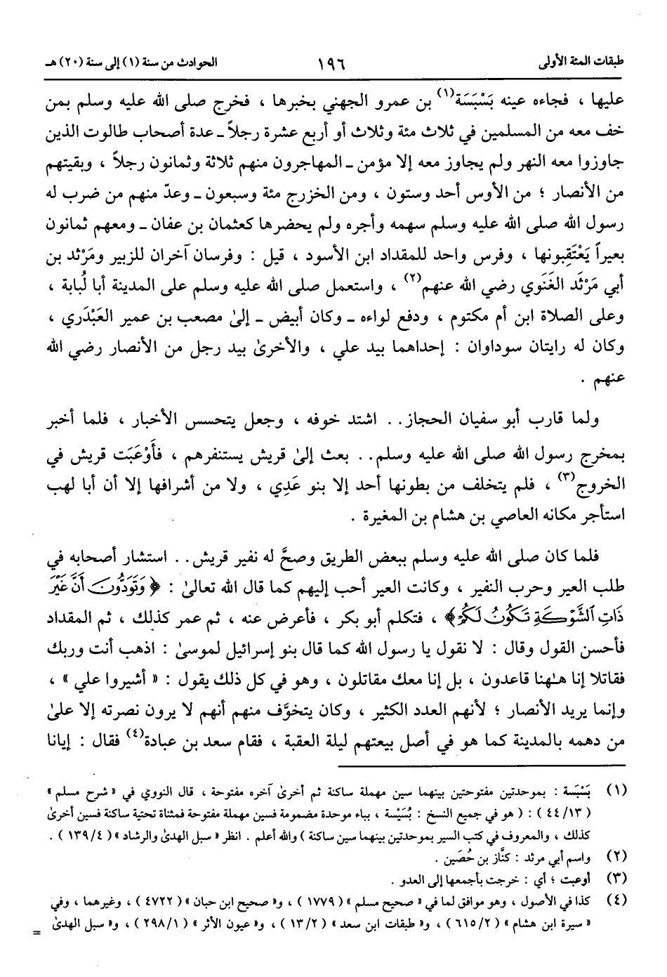 (1) بسبسة: بموحدتين مفتوحتين بينهما سين مهملة ساكنة ثم أخرى آخره مفتوحة، قال النووي في «شرح مسلم» (13/ 44): (هو في جميع النسخ: بسيسة، بباء موحدة مضمومة فسين مهملة مفتوحة فمثناة تحتية ساكنة فسين أخرى كذلك، والمعروف في كتب السير بموحدتين بينهما سين ساكنة) والله أعلم. انظر «سبل الهدى والرشاد» (4/ 139).