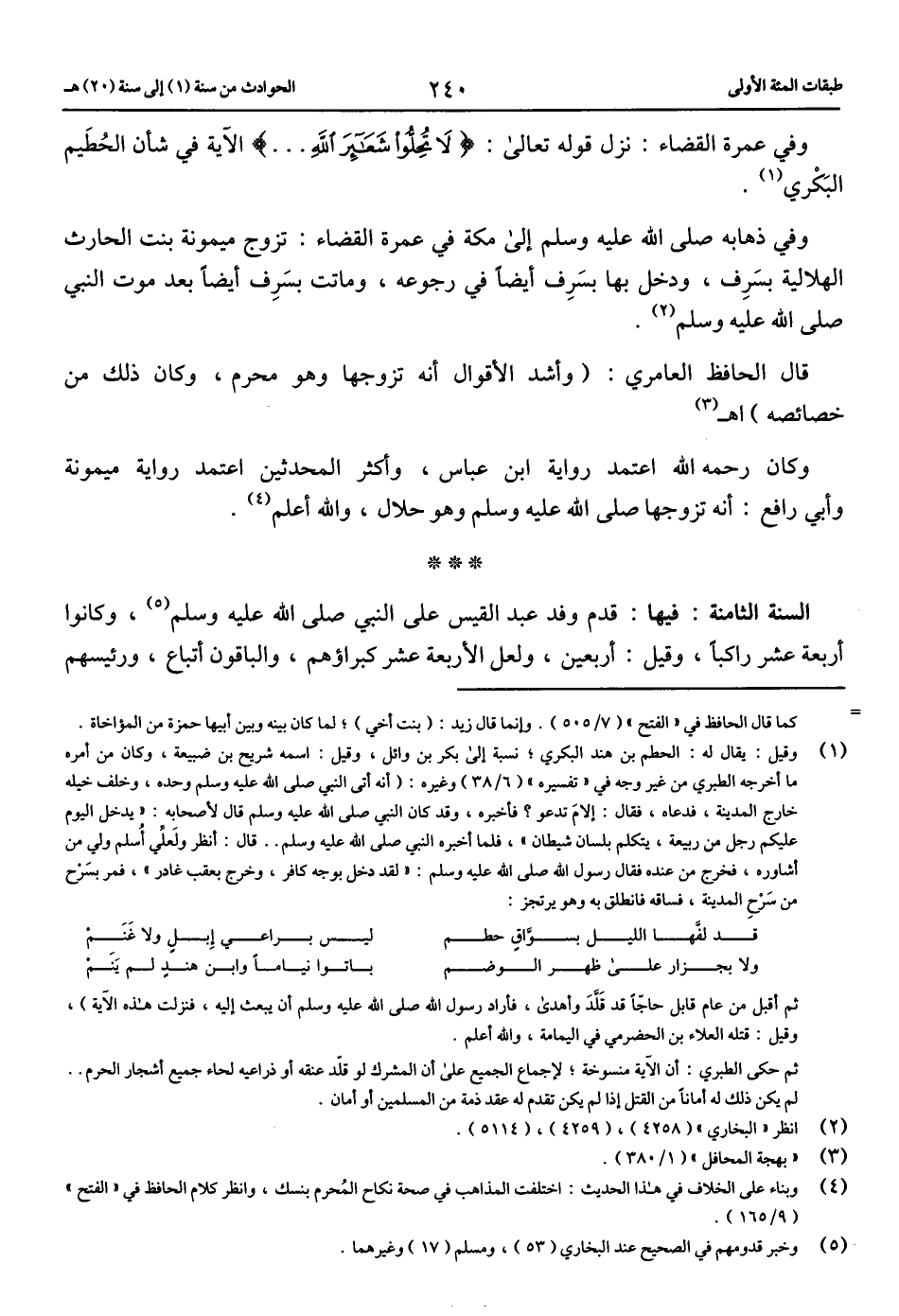 قال الحافظ العامري: (وأشد الأقوال أنه تزوجها وهو محرم، وكان ذلك من خصائصه) اهـ (3)