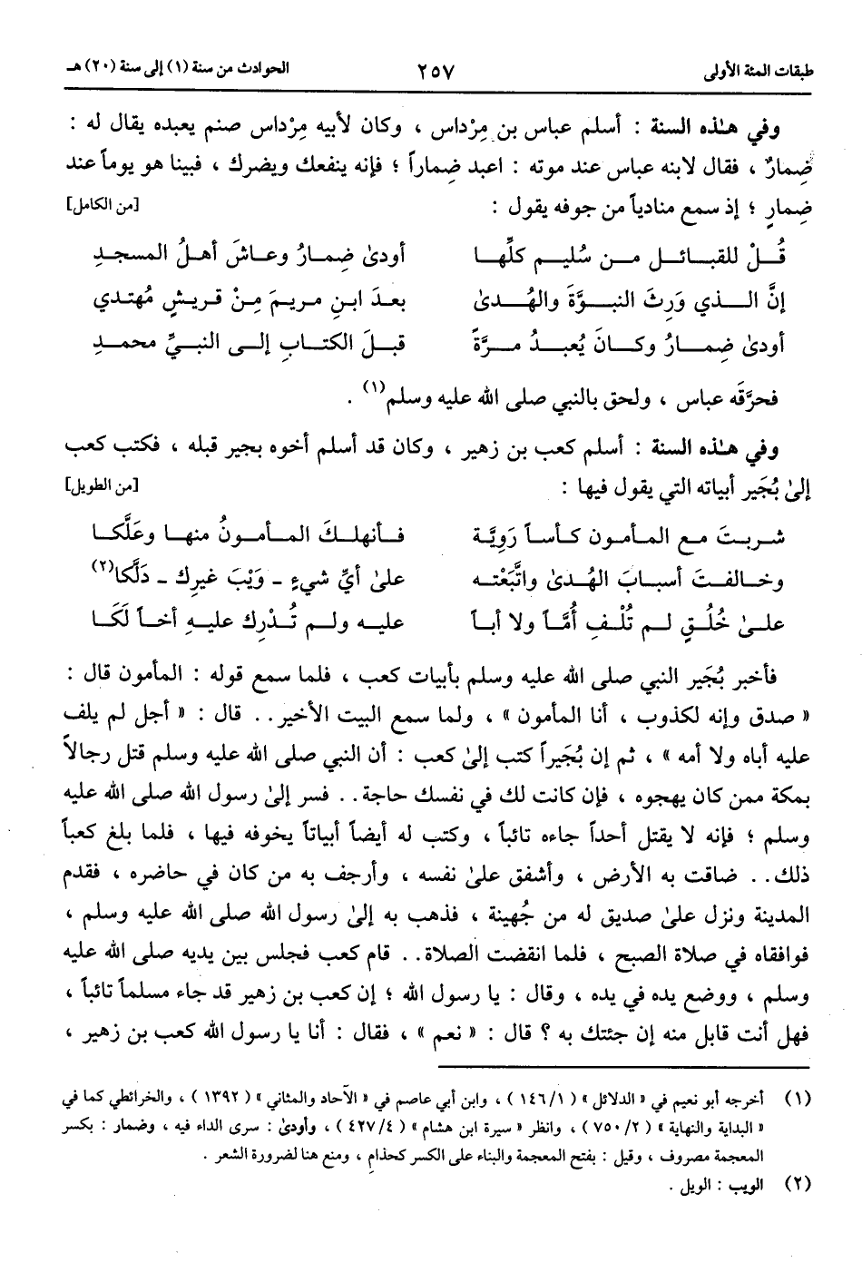 وفي هذه السنة: أسلم كعب بن زهير، وكان قد أسلم أخوه بجير قبله، فكتب كعب إلى بجير أبياته التي يقول فيها: [من الطويل]