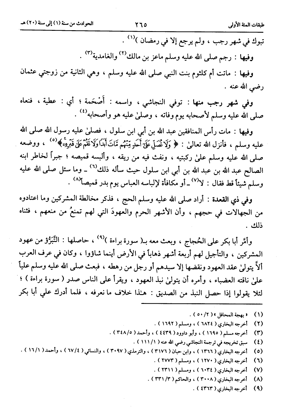 وفيها: ماتت أم كلثوم بنت النبي صلّى الله عليه وسلم، وهي الثانية من زوجتي عثمان رضي الله عنه.