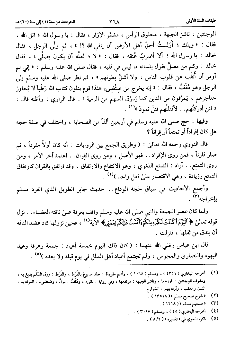(1) أخرجه البخاري (4351)، ومسلم (1064)، وأديم مقروظ: جلد مدبوغ بالقرظ، والقرظ: ورق السّلم يدبغ به، ومشرف الوجنتين: بارزهما، وناشز الجبهة: مرتفعها، وفي رواية: ناتئ، ومقفّ: مولّ، وضئضئ: المراد به: النسل والعقب، وأراد بهم: الخوارج.