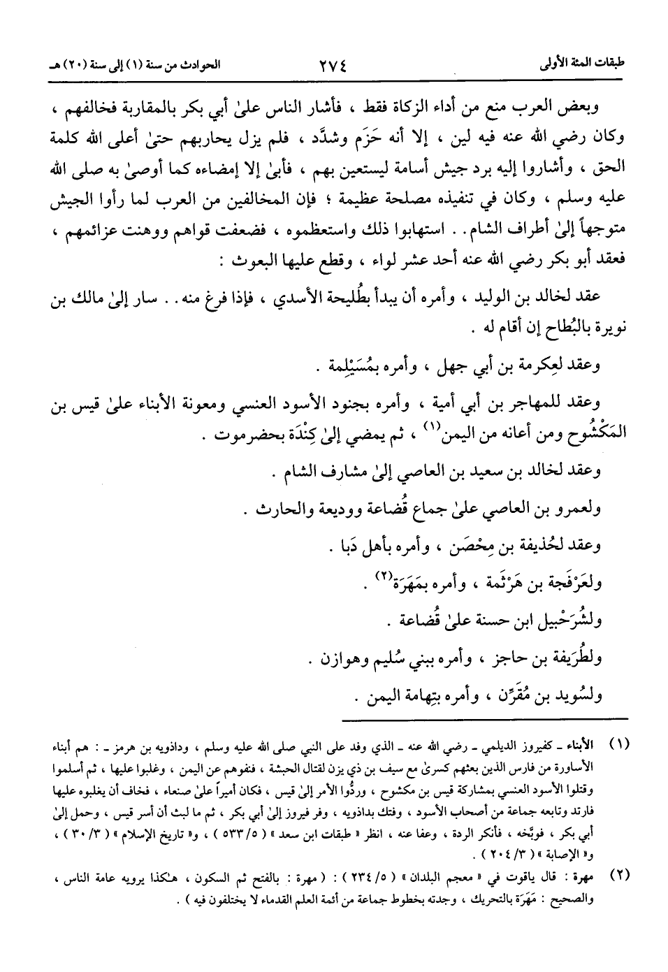 (1) الأبناء-كفيروز الديلمي-رضي الله عنه-الذي وفد على النبي صلّى الله عليه وسلم، وداذويه بن هرمز-: هم أبناء الأساورة من فارس الذين بعثهم كسرى مع سيف بن ذي يزن لقتال الحبشة، فنفوهم عن اليمن، وغلبوا عليها، ثم أسلموا وقتلوا الأسود العنسي بمشاركة قيس بن مكشوح، وردّوا الأمر إلى قيس، فكان أميرا على صنعاء، فخاف أن يغلبوه عليها فارتد وتابعه جماعة من أصحاب الأسود، وفتك بداذويه، وفر فيروز إلى أبي بكر، ثم ما لبث أن أسر قيس، وحمل إلى أبي بكر، فوبّخه، فأنكر الردة، وعفا عنه، انظر «طبقات ابن سعد» (5/ 533)، و «تاريخ الإسلام» (3/ 30)، و «الإصابة» (3/ 204).