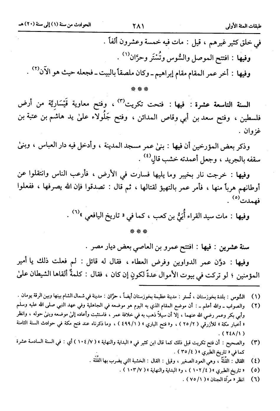 (3) والصحيح: أن فتح تكريت قبل ذلك كما قال ابن كثير في «البداية والنهاية» (7/ 104) أي: في السنة السادسة عشرة كما في «تاريخ الطبري» (4/ 35).