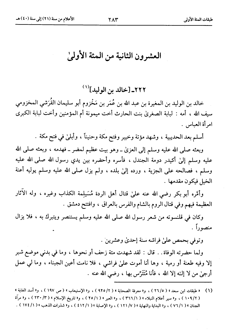 خالد بن الوليد بن المغيرة بن عبد الله بن عمر بن مخزوم أبو سليمان القرشي المخزومي سيف الله، أمه: لبابة الصغرى بنت الحارث أخت ميمونة أم المؤمنين وأخت لبابة الكبرى امرأة العباس.