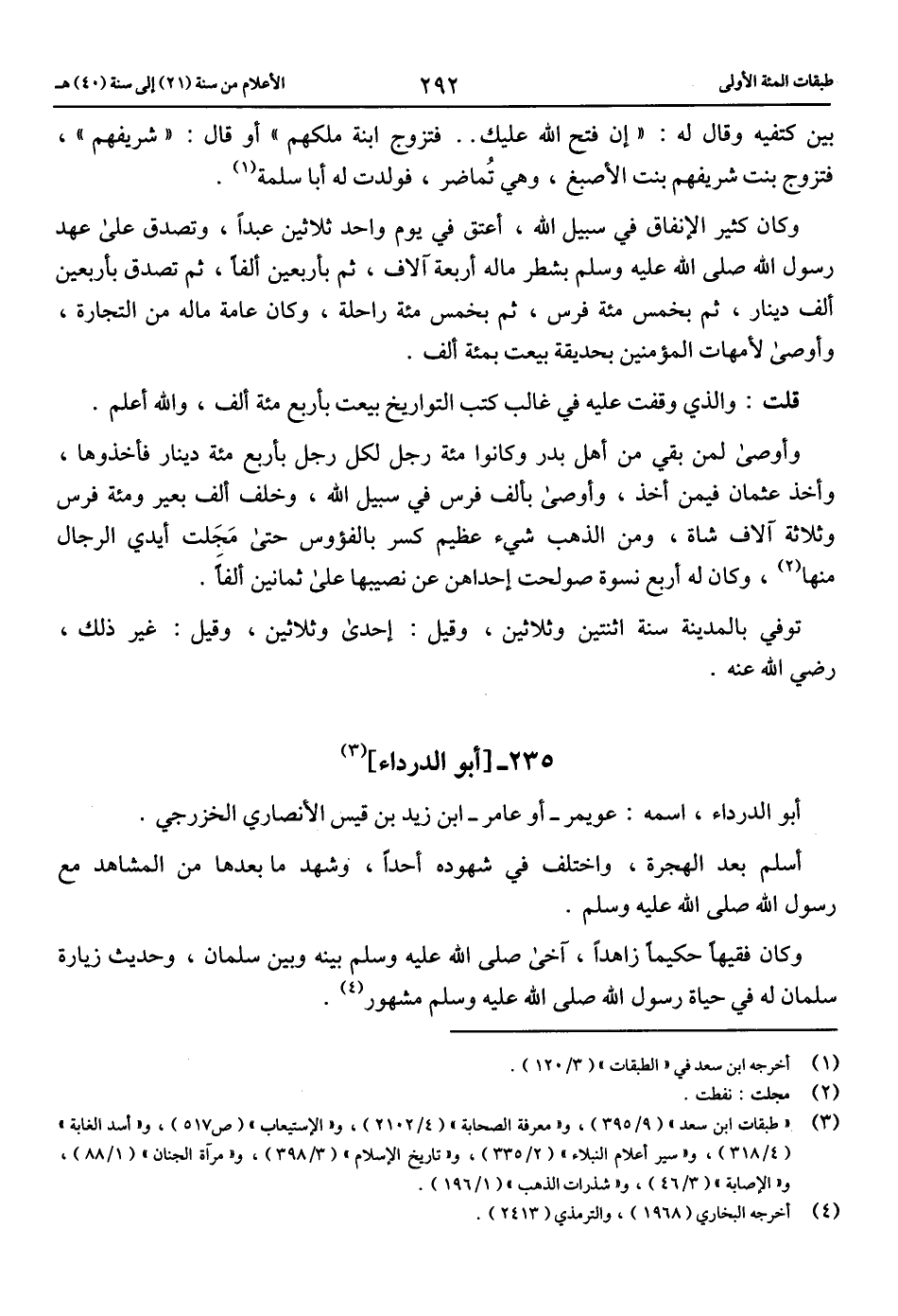 (3) «طبقات ابن سعد» (9/ 395)، و «معرفة الصحابة» (4/ 2102)، و «الاستيعاب» (ص 517)، و «أسد الغابة» (4/ 318)، و «سير أعلام النبلاء» (2/ 335)، و «تاريخ الإسلام» (3/ 398)، و «مرآة الجنان» (1/ 88)، و «الإصابة» (3/ 46)، و «شذرات الذهب» (1/ 196).