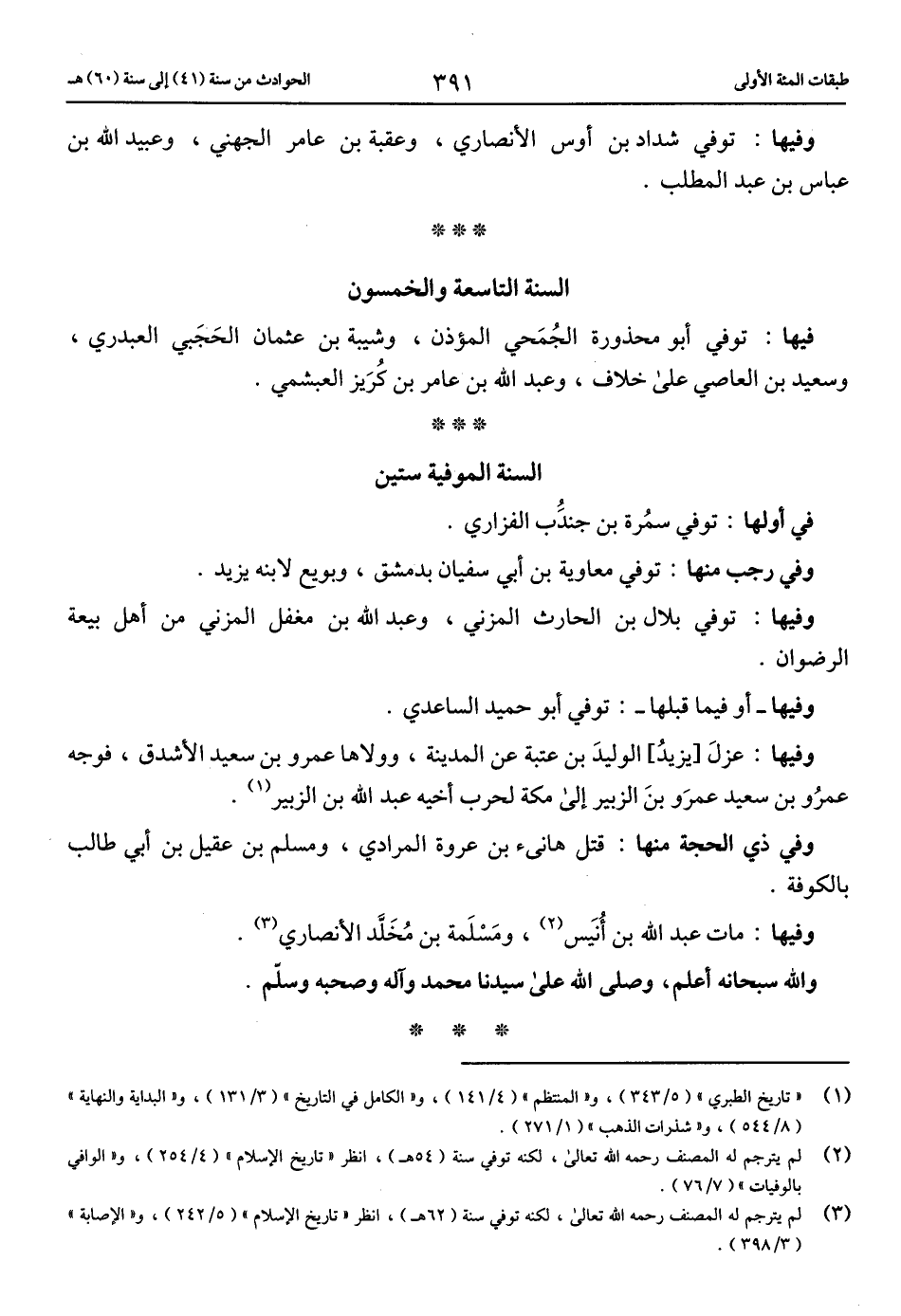 وفيها: مات عبد الله بن أنيس (2)، ومسلمة بن مخلّد الأنصاري (3).