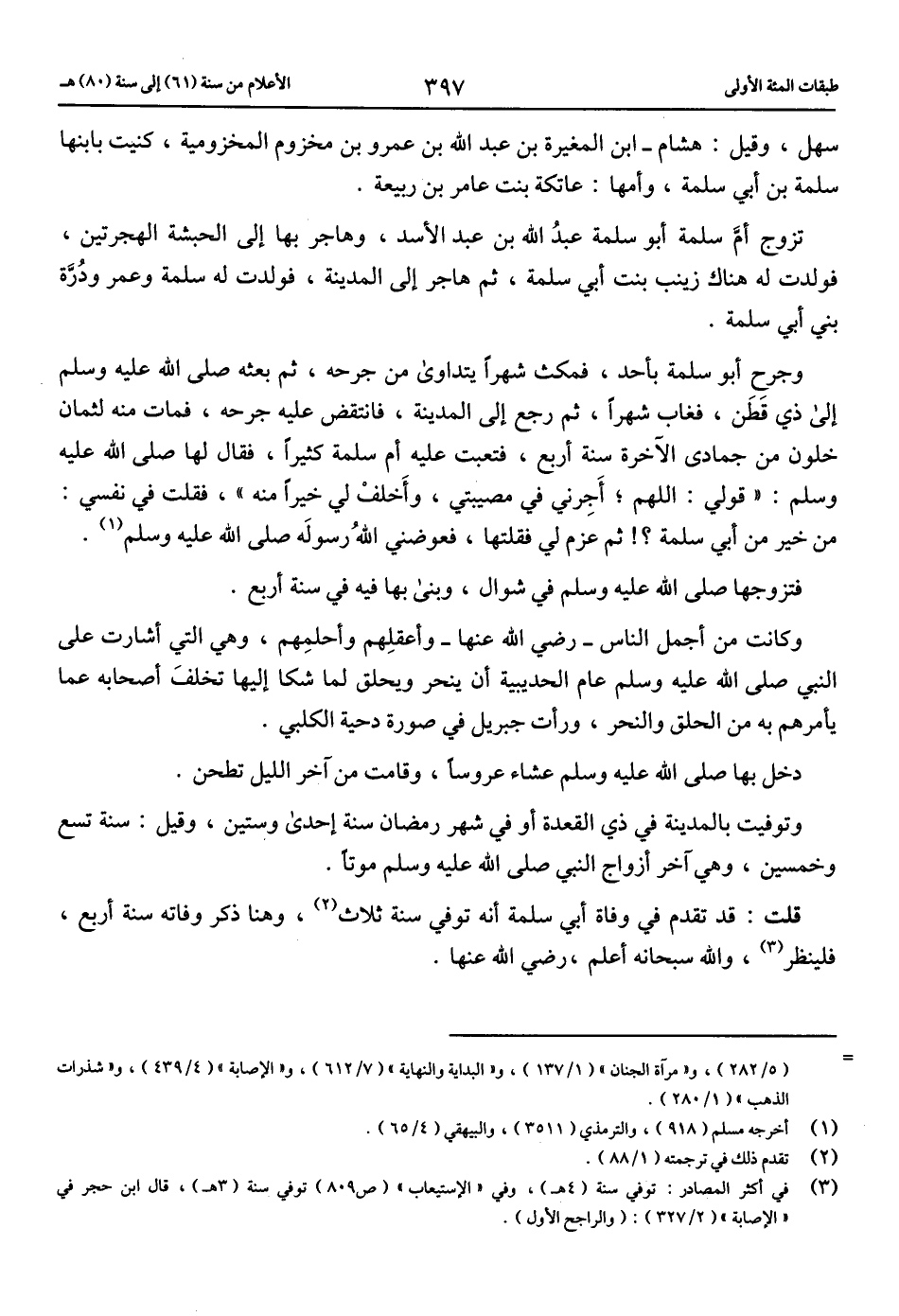 = (5/ 282)، و «مرآة الجنان» (1/ 137)، و «البداية والنهاية» (7/ 612)، و «الإصابة» (4/ 439)، و «شذرات الذهب» (1/ 280).