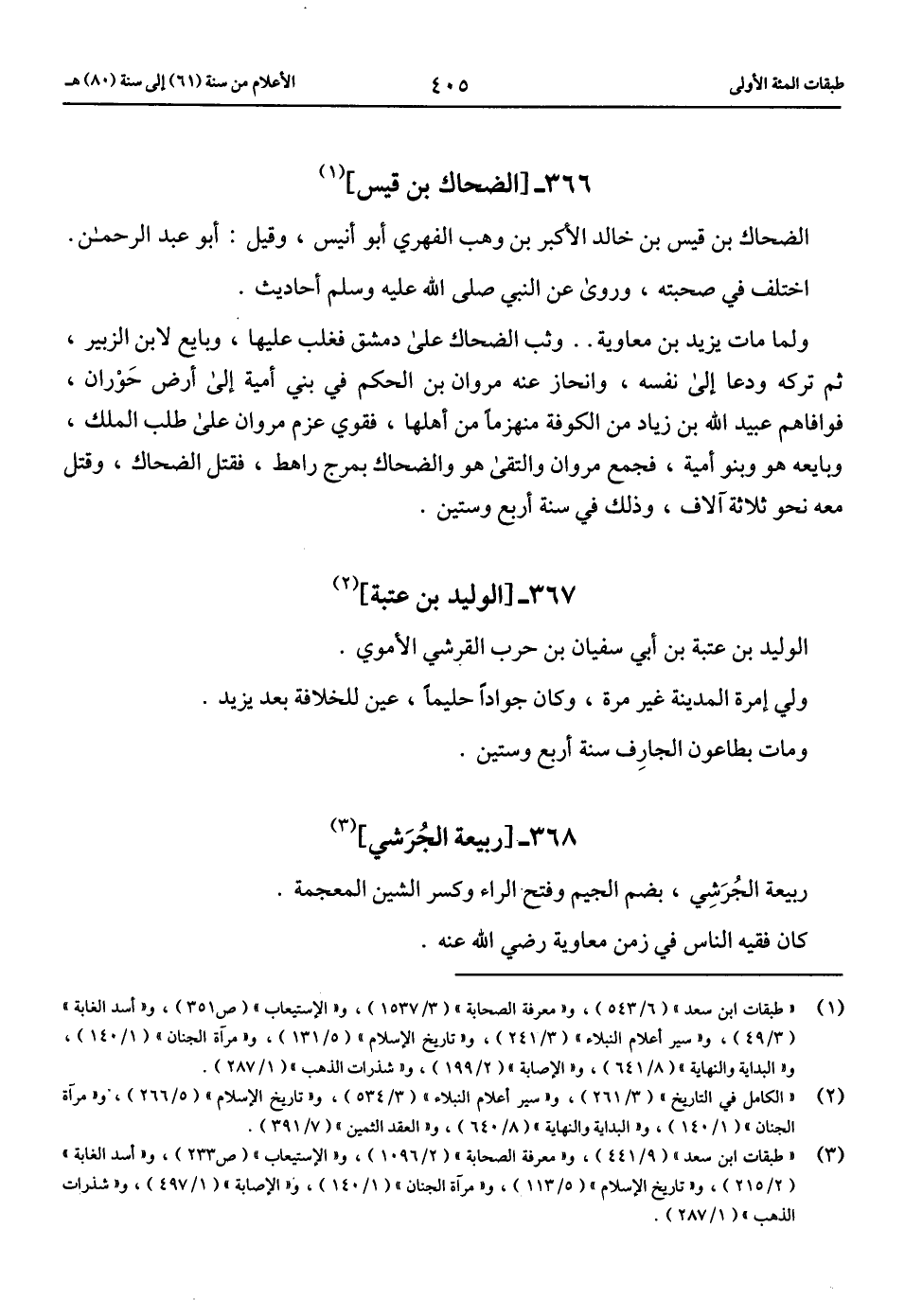 (3) «طبقات ابن سعد» (9/ 441)، و «معرفة الصحابة» (2/ 1096)، و «الاستيعاب» (ص 233)، و «أسد الغابة» (2/ 215)، و «تاريخ الإسلام» (5/ 113)، و «مرآة الجنان» (1/ 140)، و «الإصابة» (1/ 497)، و «شذرات الذهب» (1/ 287).