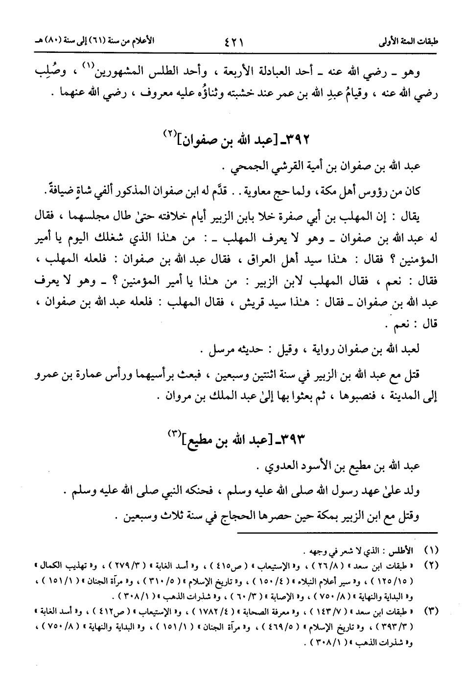 (2) «طبقات ابن سعد» (8/ 26)، و «الاستيعاب» (ص 415)، و «أسد الغابة» (3/ 279)، و «تهذيب الكمال» (15/ 125)، و «سير أعلام النبلاء» (4/ 150)، و «تاريخ الإسلام» (5/ 310)، و «مرآة الجنان» (1/ 151)، و «البداية والنهاية» (8/ 750)، و «الإصابة» (3/ 60)، و «شذرات الذهب» (1/ 308).