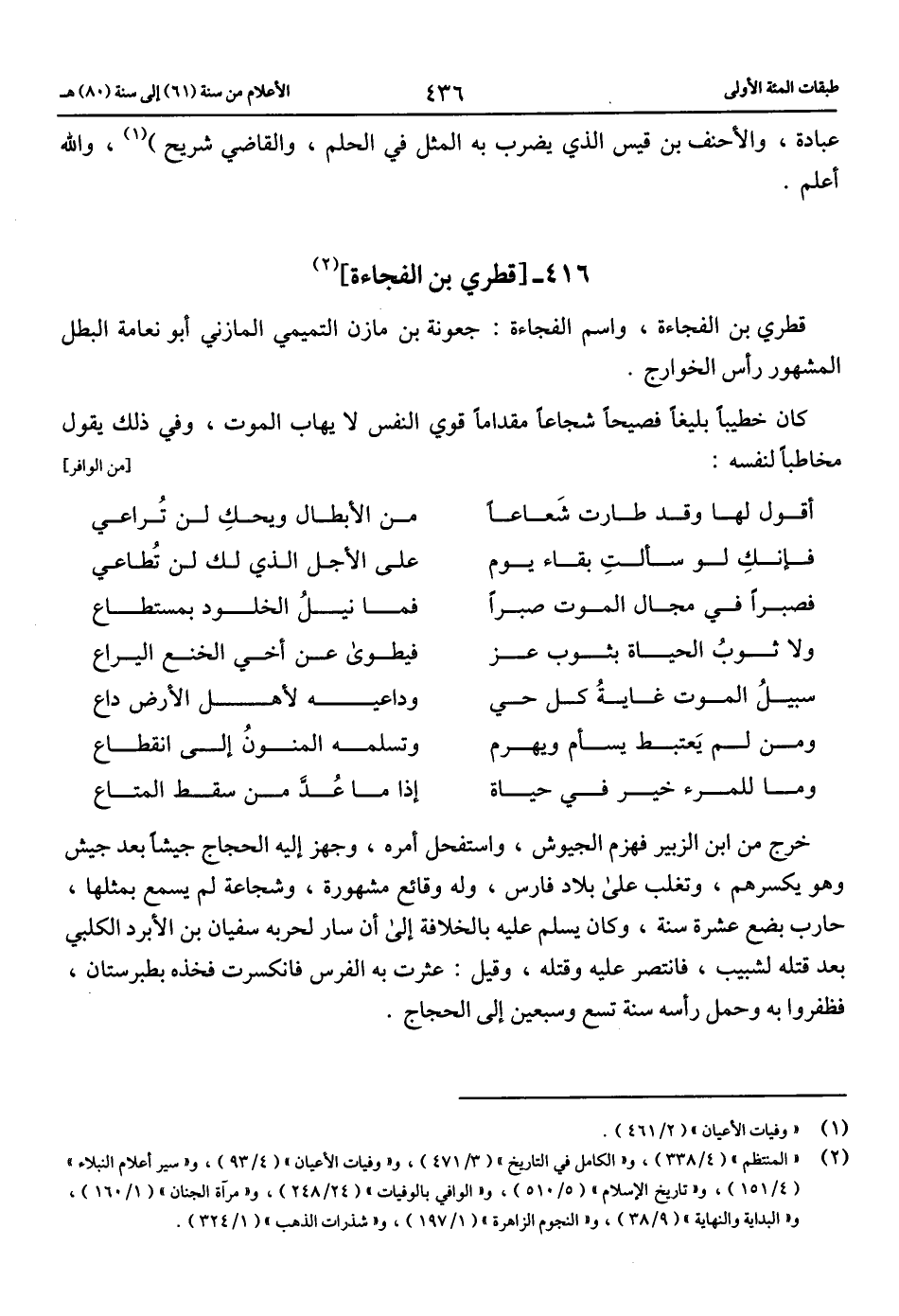 قطري بن الفجاءة، واسم الفجاءة: جعونة بن مازن التميمي المازني أبو نعامة البطل المشهور رأس الخوارج.