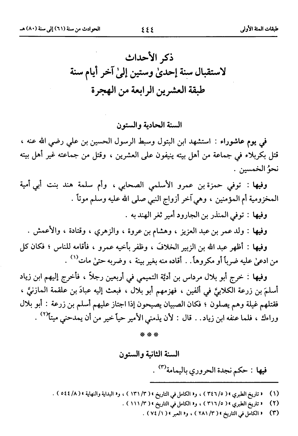 (1) «تاريخ الطبري» (5/ 346)، و «الكامل في التاريخ» (3/ 131)، و «البداية والنهاية» (8/ 544).