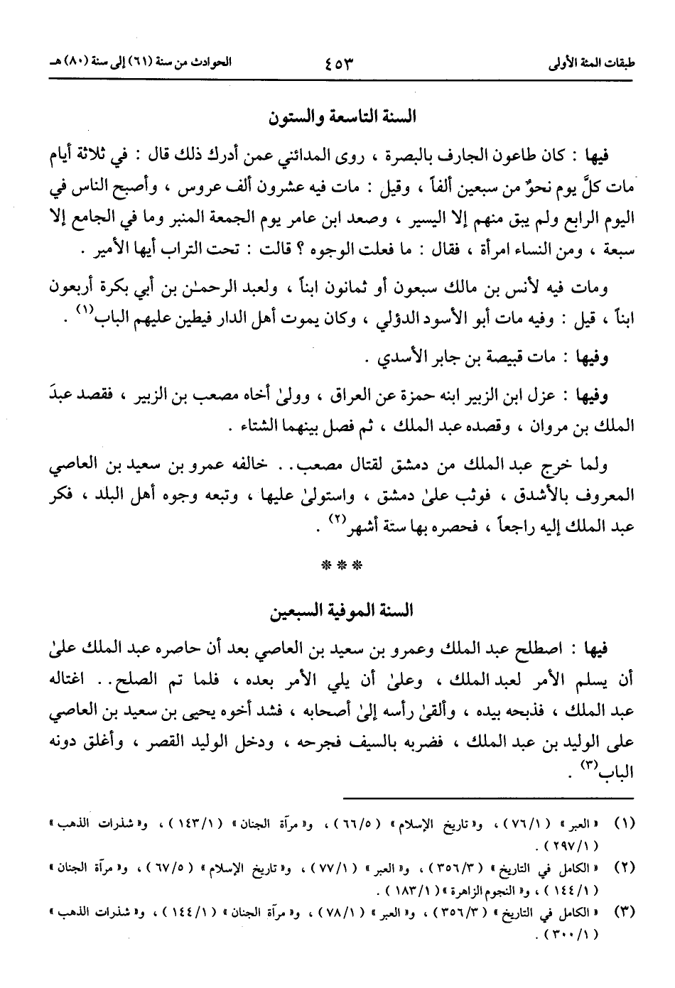 (2) «الكامل في التاريخ» (3/ 356)، و «العبر» (1/ 77)، و «تاريخ الإسلام» (5/ 67)، و «مرآة الجنان» (1/ 144)، و «النجوم الزاهرة» (1/ 183).