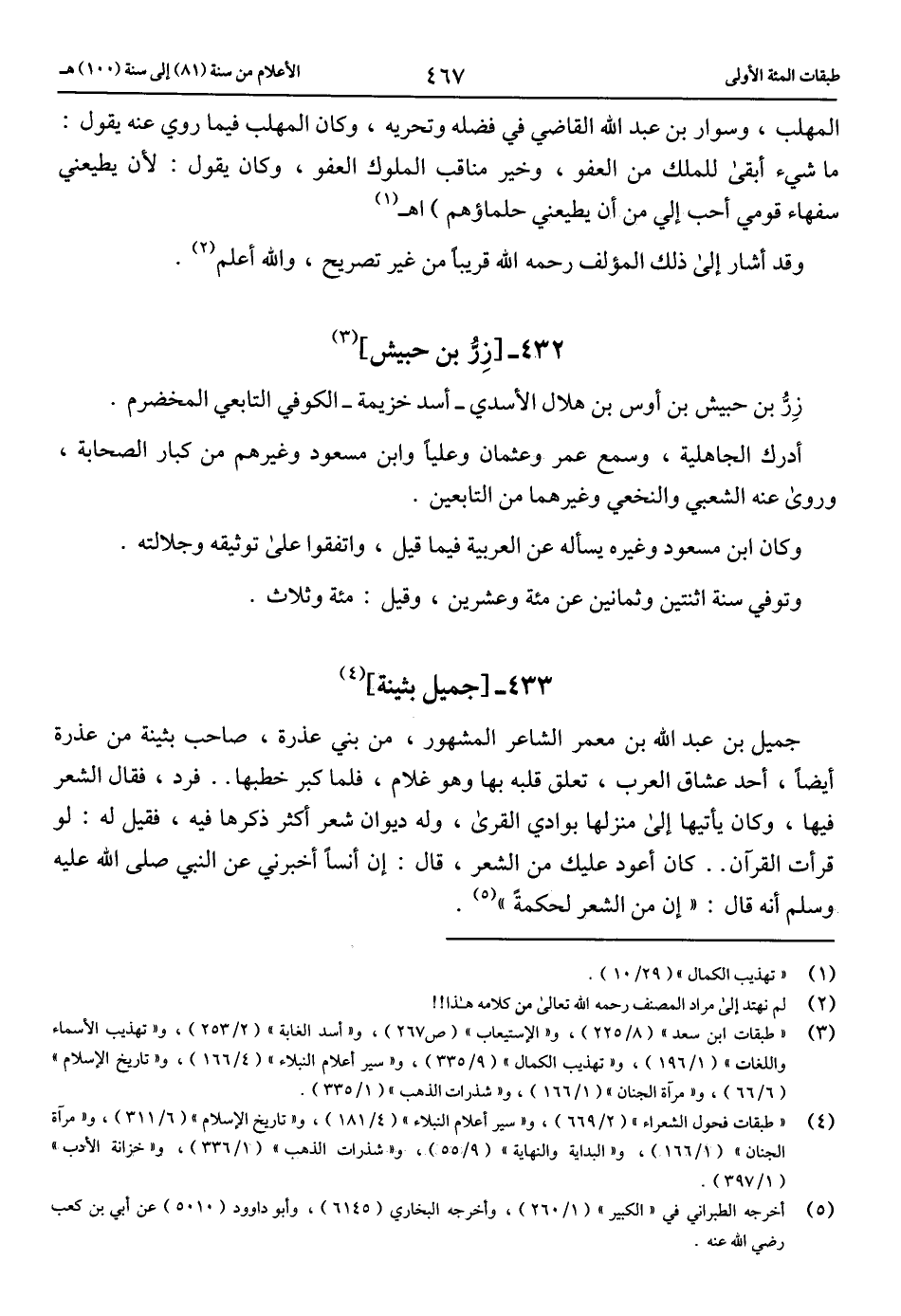 (4) «طبقات فحول الشعراء» (2/ 669)، و «سير أعلام النبلاء» (4/ 181)، و «تاريخ الإسلام» (6/ 311)، و «مرآة الجنان» (1/ 166)، و «البداية والنهاية» (9/ 55)، و «شذرات الذهب» (1/ 336)، و «خزانة الأدب» (1/ 397).