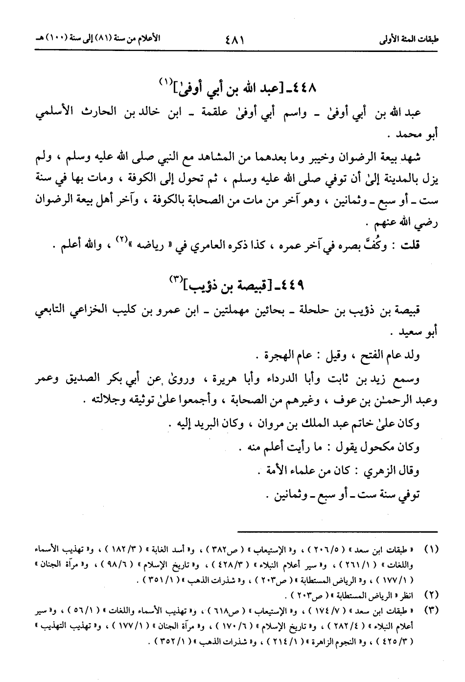 (3) «طبقات ابن سعد» (7/ 174)، و «الاستيعاب» (ص 618)، و «تهذيب الأسماء واللغات» (1/ 56)، و «سير أعلام النبلاء» (4/ 282)، و «تاريخ الإسلام» (6/ 170)، و «مرآة الجنان» (1/ 177)، و «تهذيب التهذيب» (3/ 425)، و «النجوم الزاهرة» (1/ 214)، و «شذرات الذهب» (1/ 352).