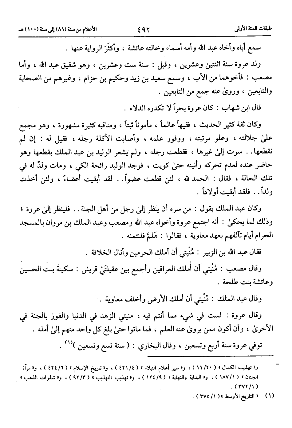 قال ابن شهاب: كان عروة بحرا لا تكدره الدلاء.