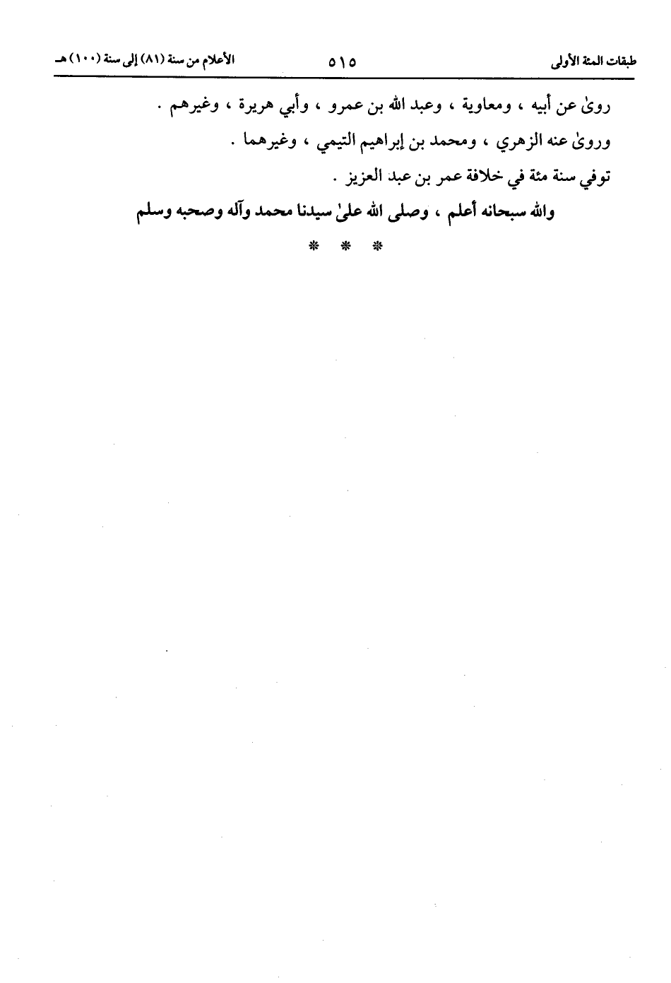 توفي سنة مائة في خلافة عمر بن عبد العزيز.