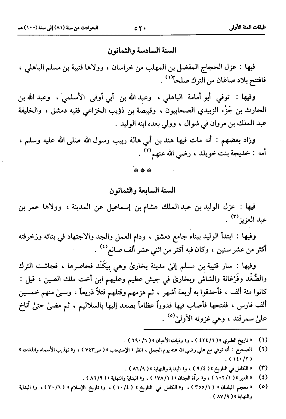 (4) «العبر» (1/ 102)، و «مرآة الجنان» (1/ 178)، و «البداية والنهاية» (9/ 86).