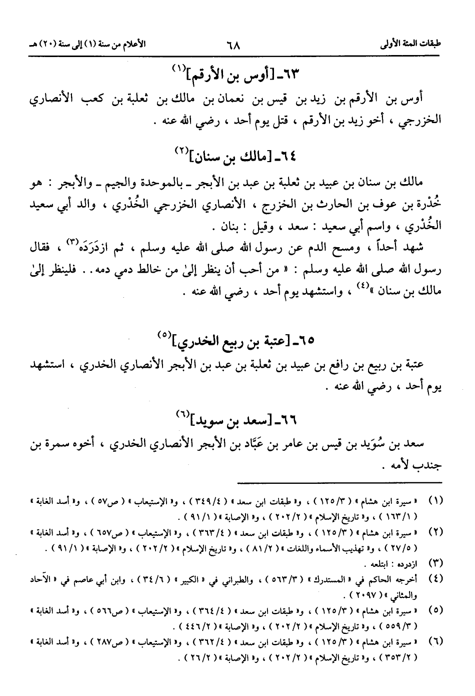 (6) «سيرة ابن هشام» (3/ 125)، و «طبقات ابن سعد» (4/ 362)، و «الاستيعاب» (ص 287)، و «أسد الغابة» (2/ 353)، و «تاريخ الإسلام» (2/ 202)، و «الإصابة» (2/ 26).