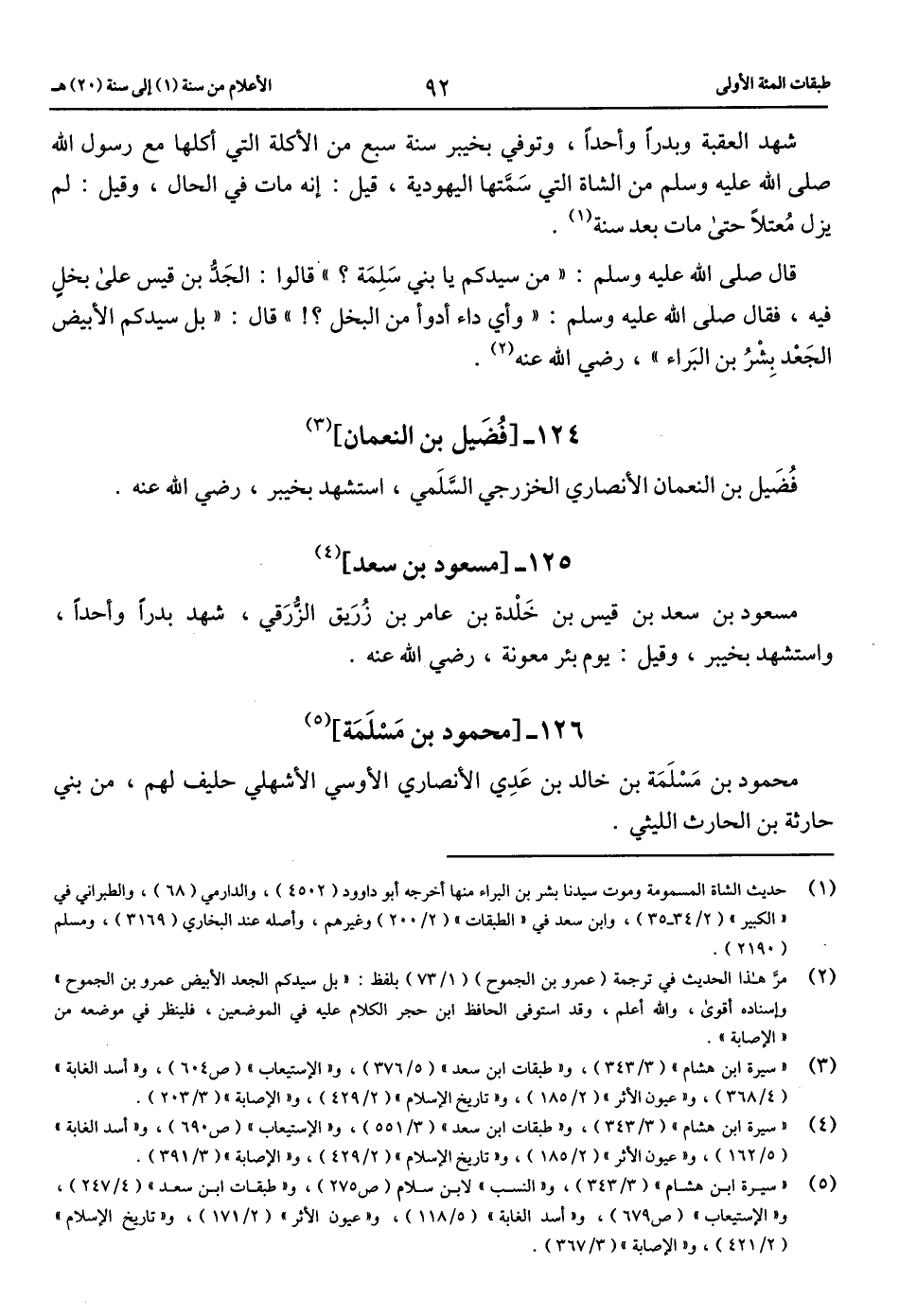 (4) «سيرة ابن هشام» (3/ 343)، و «طبقات ابن سعد» (3/ 551)، و «الاستيعاب» (ص 690)، و «أسد الغابة» (5/ 162)، و «عيون الأثر» (2/ 185)، و «تاريخ الإسلام» (2/ 429)، و «الإصابة» (3/ 391).
