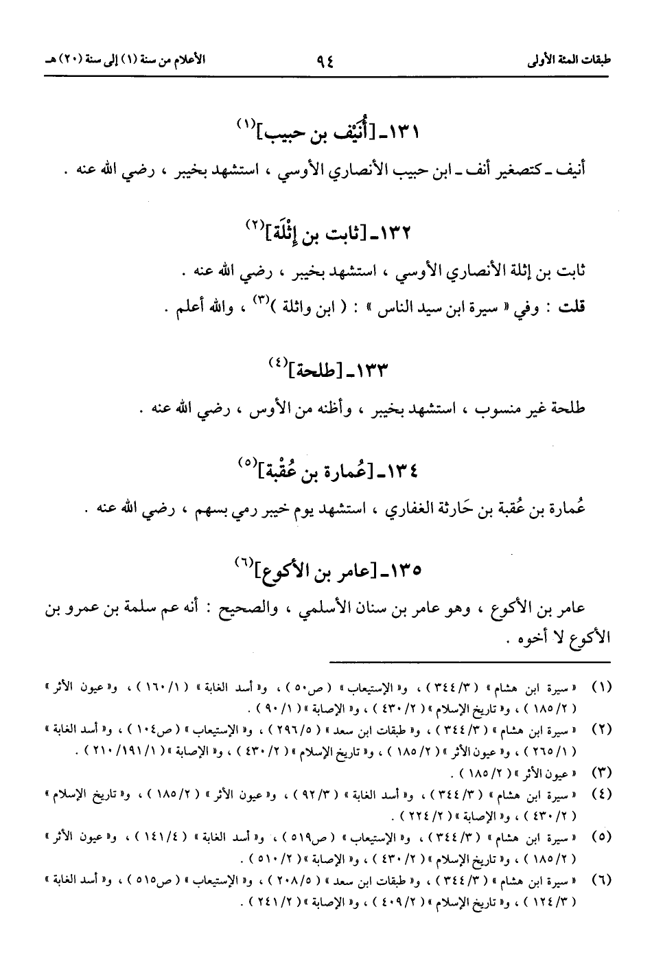 (6) «سيرة ابن هشام» (3/ 344)، و «طبقات ابن سعد» (5/ 208)، و «الاستيعاب» (ص 515)، و «أسد الغابة» (3/ 124)، و «تاريخ الإسلام» (2/ 409)، و «الإصابة» (2/ 241).