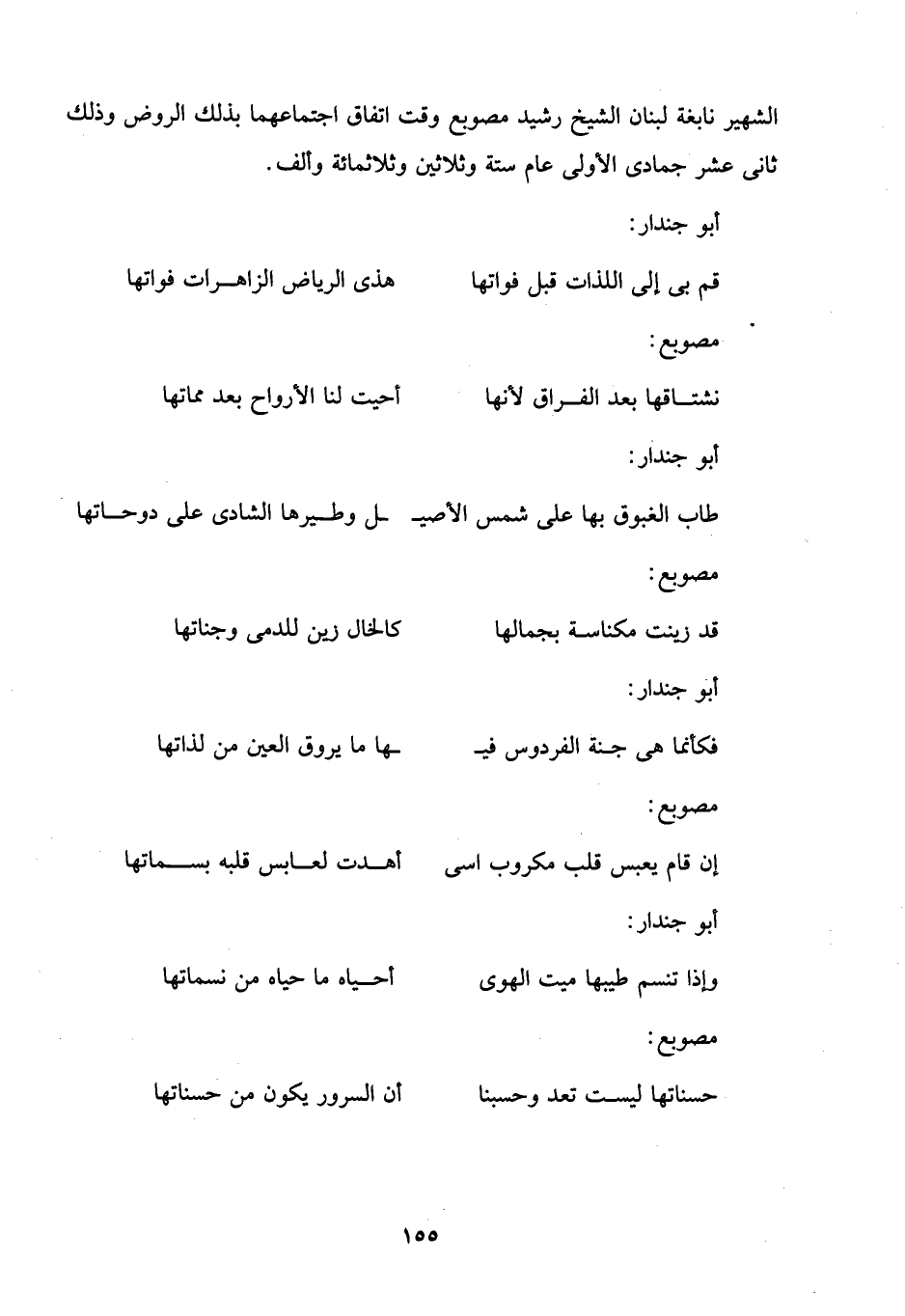 الشهير نابغة لبنان الشيخ رشيد مصوبع وقت اتفاق اجتماعهما بذلك الروض وذلك ثانى عشر جمادى الأولى عام ستة وثلاثين وثلاثمائة وألف.
