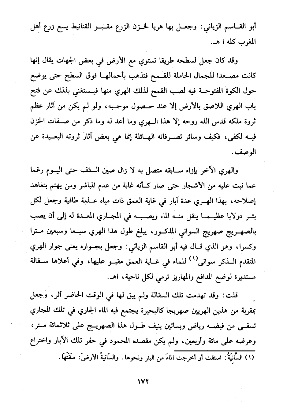 أبو القاسم الزياني: وجعل بها هريا لخزن الزرع مقبو القنانيط يسع زرع أهل المغرب كله اهـ.