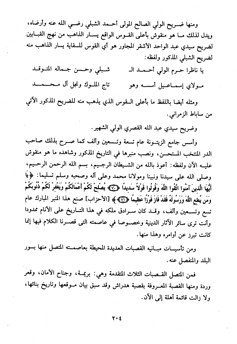 ومثله أيضا باللفظ ما بأعلى القوس الذي يذهب منه للضريح المذكور الأتي من ساباط الزمراني.