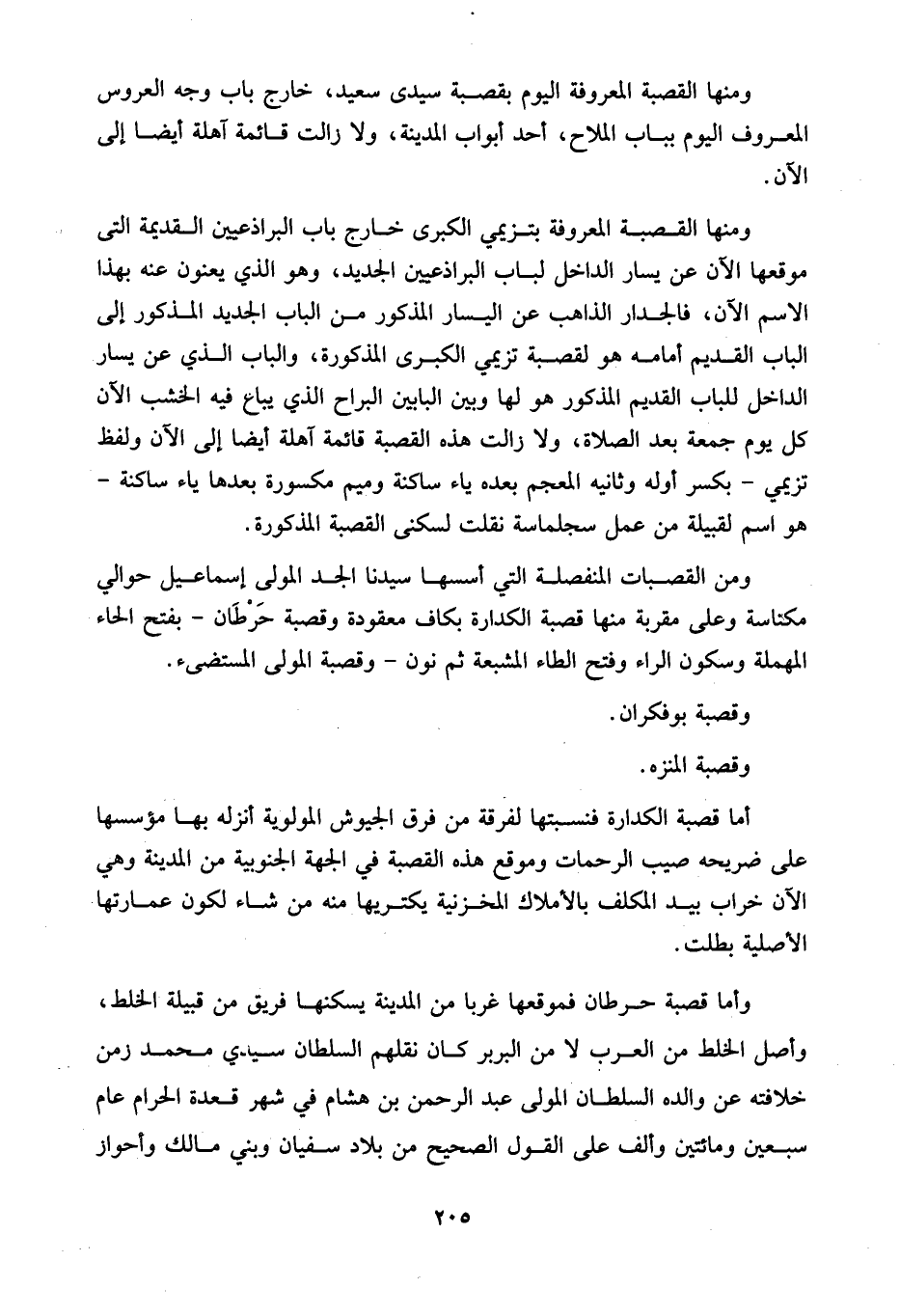 ومنها القصبة المعروفة اليوم بقصبة سيدى سعيد، خارج باب وجه العروس المعروف اليوم بباب الملاح، أحد أبواب المدينة، ولا زالت قائمة آهلة أيضا إلى الآن.