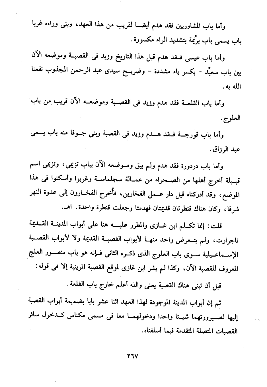 وأما باب القلعة فقد هدم وزيد في القصبة وموضعه الآن قريب من باب العلوج.