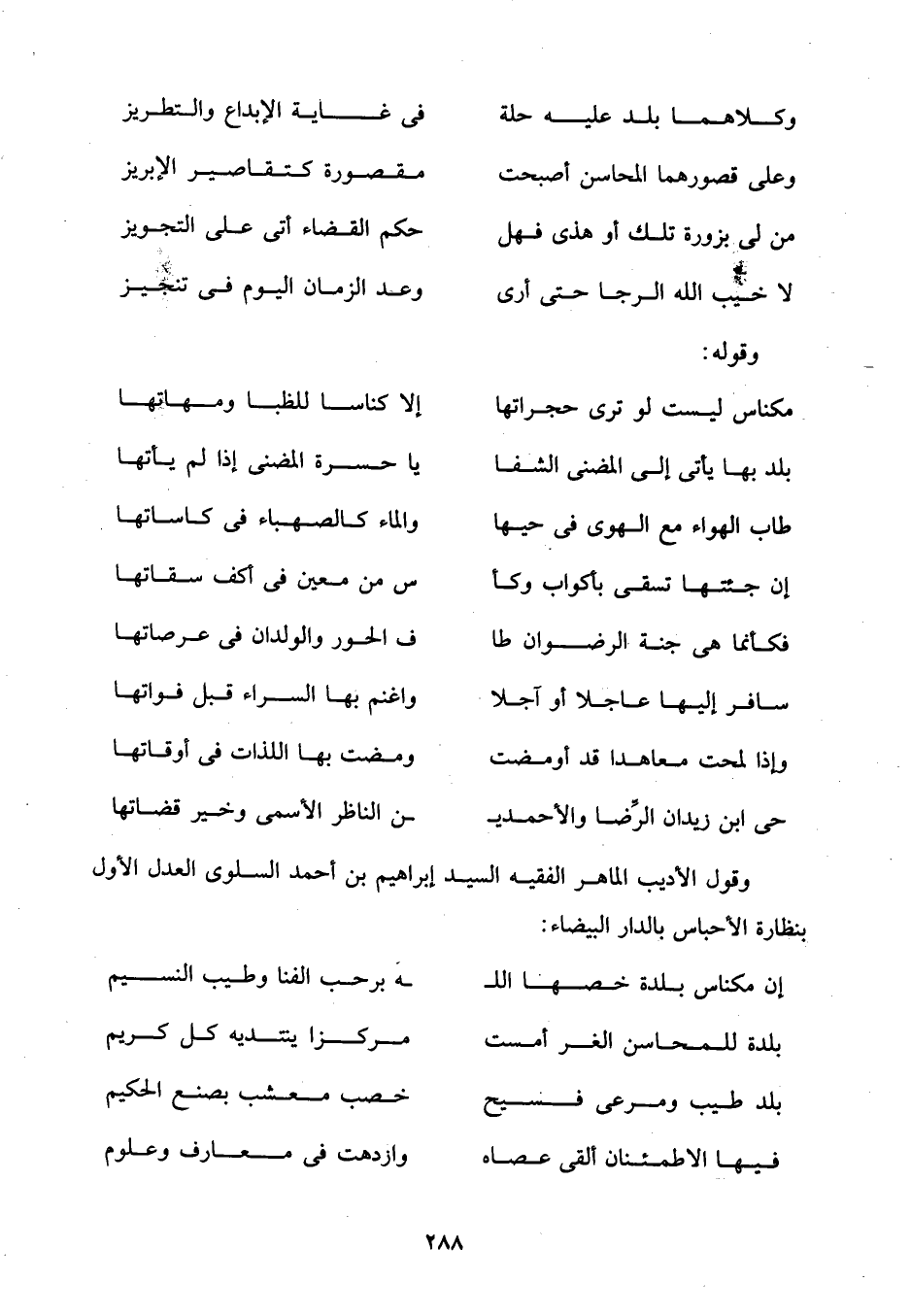 وقول الأديب الماهر الفقيه السيد إبراهيم بن أحمد السلوى العدل الأول بنظارة الأحباس بالدار البيضاء: