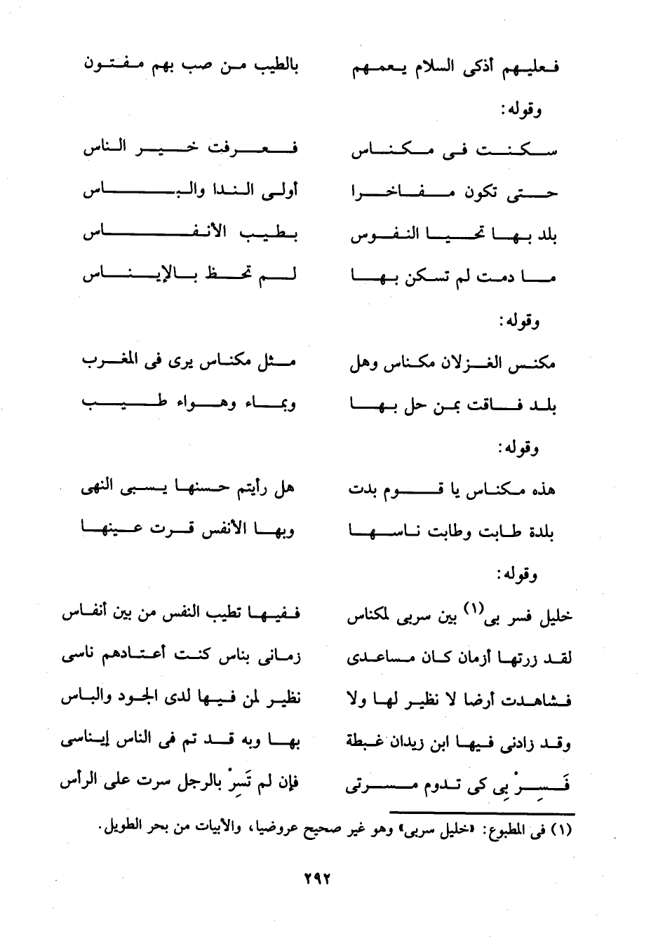 خليل فسر بى (¬1) بين سربى لمكناس ... ففيها تطيب النفس من بين أنفاس