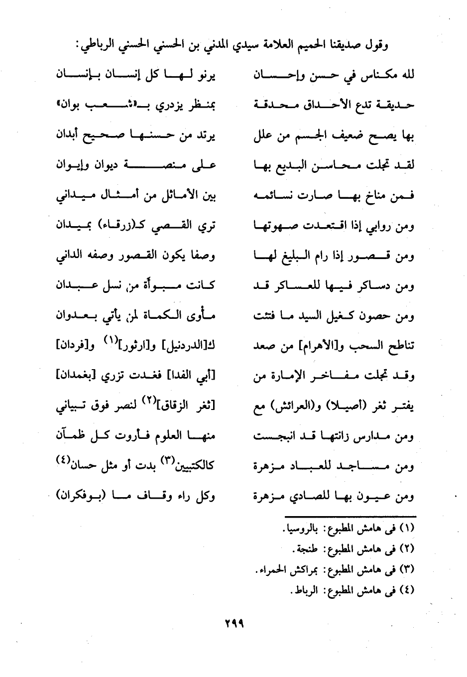 وقول صديقنا الحميم العلامة سيدي المدني بن الحسني الحسني الرباطي: