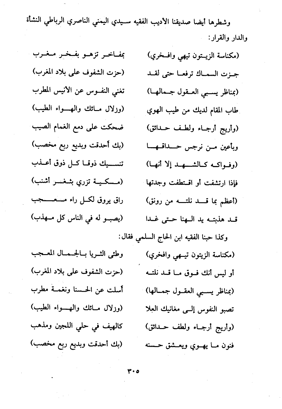 وشطرها أيضا صديقنا الأديب الفقيه سيدي اليمني الناصري الرباطي النشأة والدار والقرار: