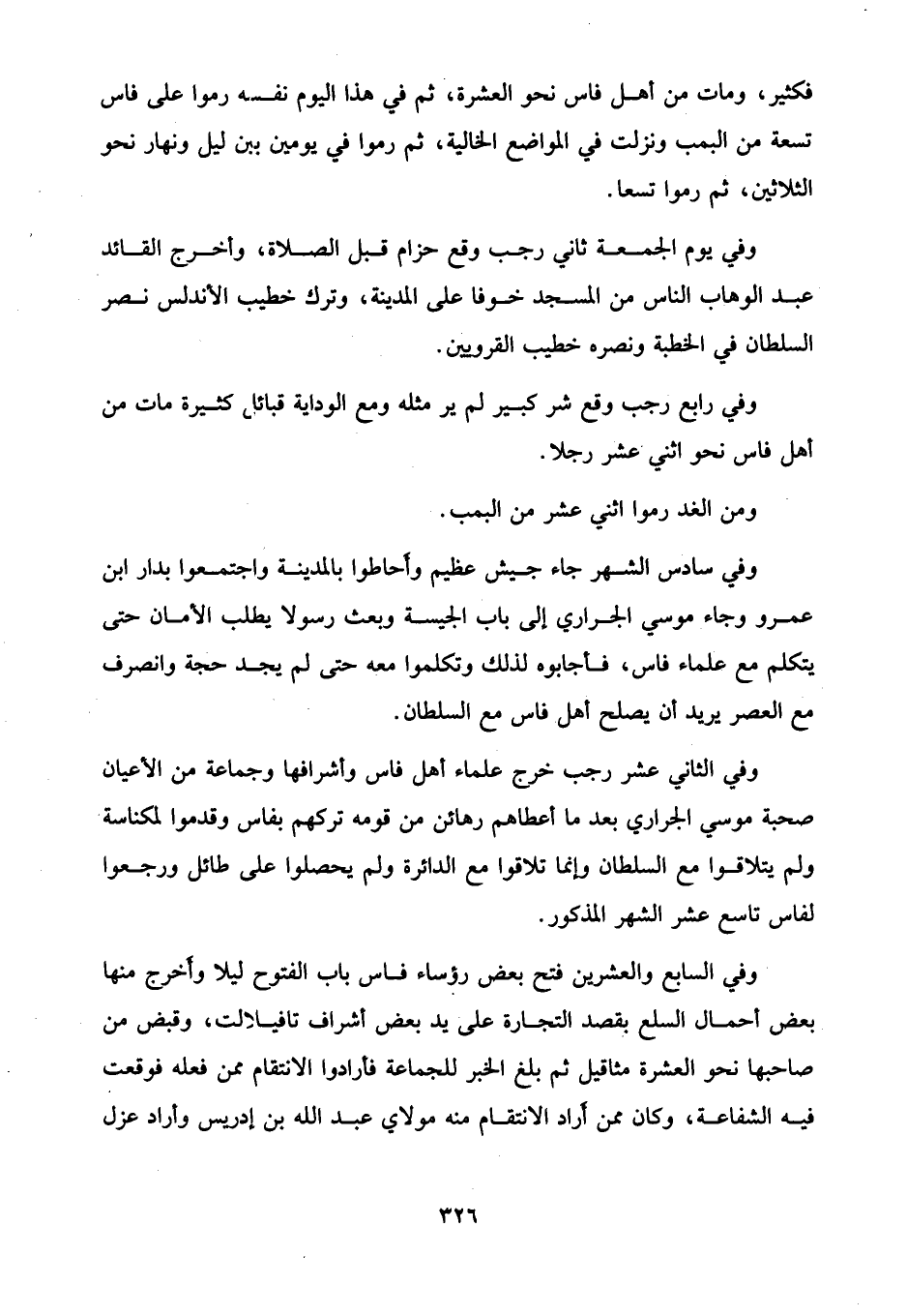 وفي رابع رجب وقع شر كبير لم ير مثله ومع الوداية قبائل كثيرة مات من أهل فاس نحو اثني عشر رجلا.