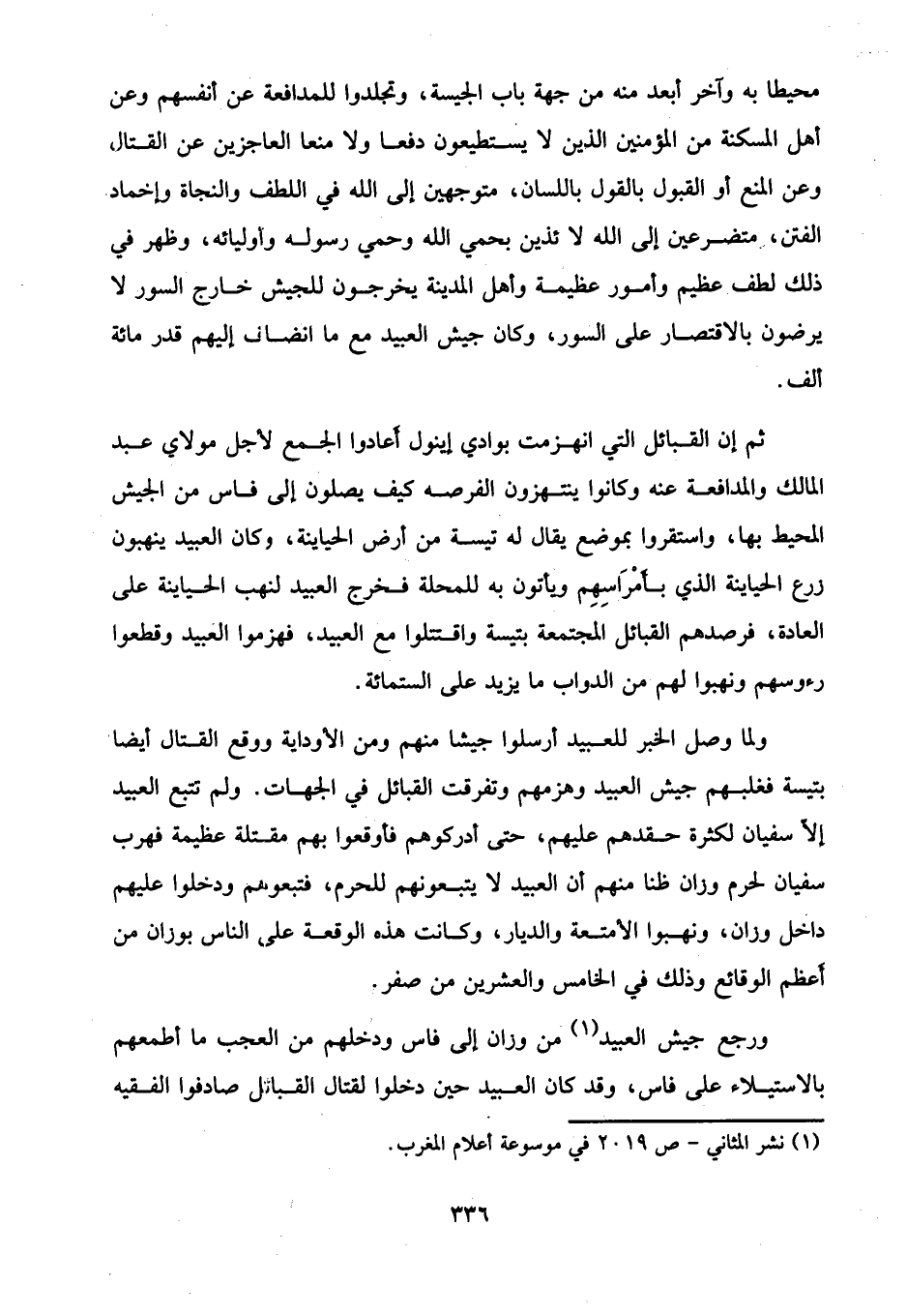 ورجع جيش العبيد (¬1) من وزان إلى فاس ودخلهم من العجب ما أطمعهم بالاستيلاء على فاس، وقد كان العبيد حين دخلوا لقتال القبائل صادفوا الفقيه