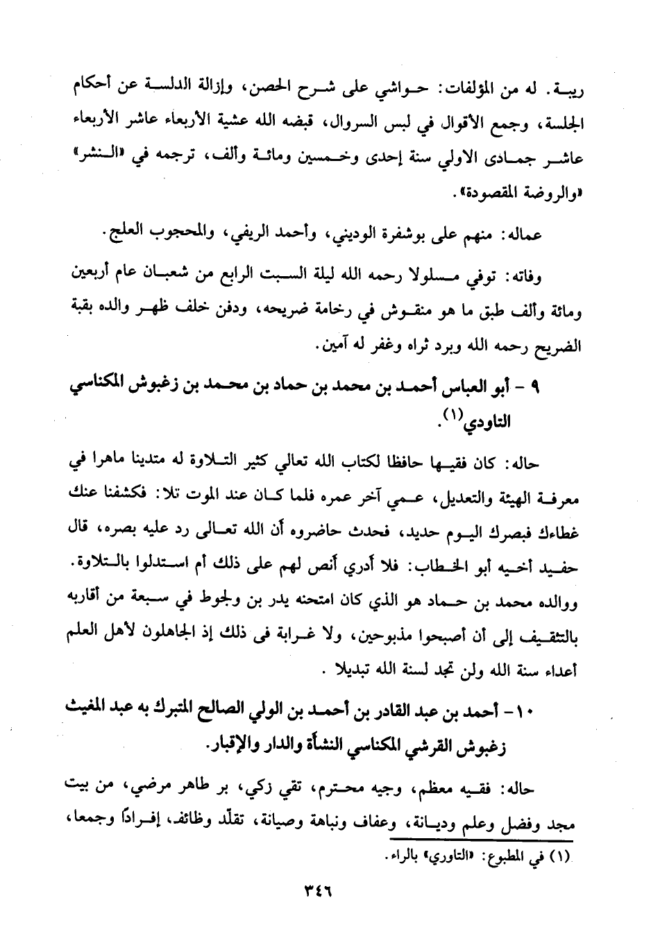 9 - أبو العباس أحمد بن محمد بن حماد بن محمد بن زغبوش المكناسي التاودي (¬1).