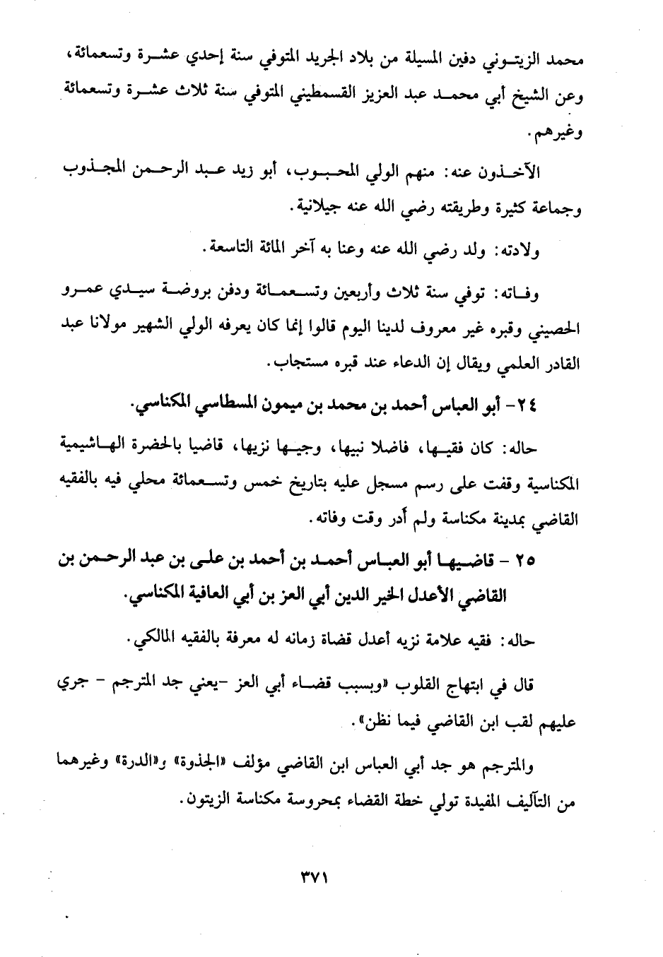 والمترجم هو جد أبي العباس ابن القاضي مؤلف "الجذوة" و "الدرة" وغيرهما من التآليف المفيدة تولي خطة القضاء بمحروسة مكناسة الزيتون.