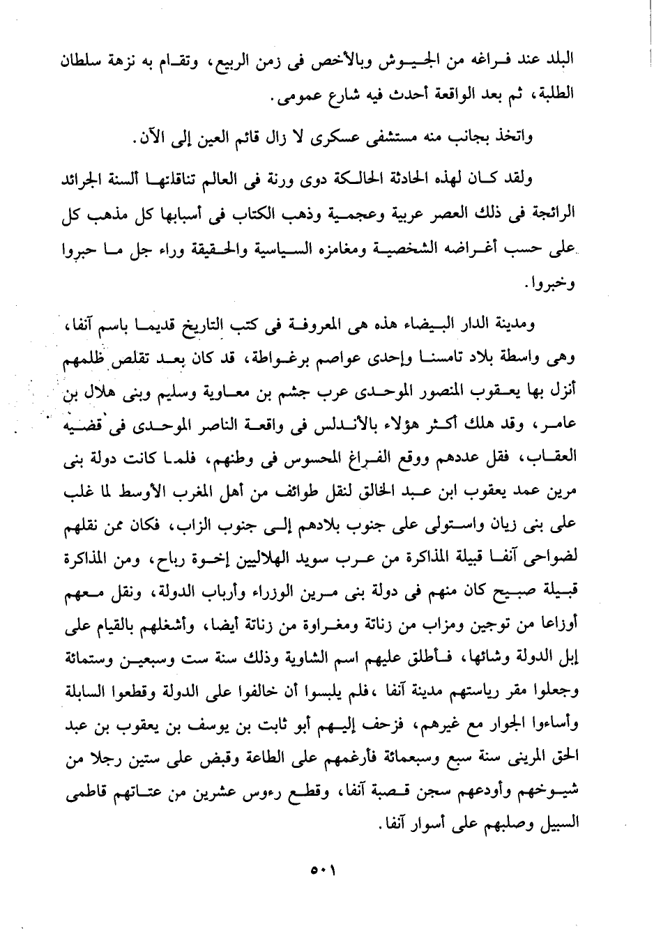 ومدينة الدار البيضاء هذه هى المعروفة في كتب التاريخ قديما باسم آنفا، وهى واسطة بلاد تامسنا وإحدى عواصم برغواطة، قد كان بعد تقلص ظلمهم أنزل بها يعقوب المنصور الموحدى عرب جشم بن معاوية وسليم وبنى هلال بن عامر، وقد هلك أكثر هؤلاء بالأندلس في واقعة الناصر الموحدى في قضيه العقاب، فقل عددهم ووقع الفراغ المحسوس في وطنهم، فلما كانت دولة بنى مرين عمد يعقوب ابن عبد الخالق لنقل طوائف من أهل المغرب الأوسط لما غلب على بنى زيان واستولى على جنوب بلادهم إلى جنوب الزاب، فكان ممن نقلهم لضواحى آنفا قبيلة المذاكرة من عرب سويد الهلاليين إخوة رباح، ومن المذاكرة قبيلة صبيح كان منهم في دولة بنى مرين الوزراء وأرباب الدولة، ونقل معهم أوزاعا من توجين ومزاب من زناتة ومغراوة من رنانة أيضا، وأشغلهم بالقيام على إبل الدولة وشائها، فأطلق عليهم اسم الشاوية وذلك سنة ست وسبعين وستمائة وجعلوا مقر رياستهم مدينة آنفا، فلم يلبسوا أن خالفوا على الدولة وقطعوا السابلة وأساءوا الجوار مع غيرهم، فزحف إليهم أبو ثابت بن يوسف بن يعقوب بن عبد الحق المرينى سنة سبع وسبعمائة فأرغمهم على الطاعة وقبض على ستين رجلا من شيوخهم وأودعهم سجن قصبة آنفا، وقطع رءوس عشرين من عتاتهم قاطمى السبيل وصلبهم على أسوار آنفا.