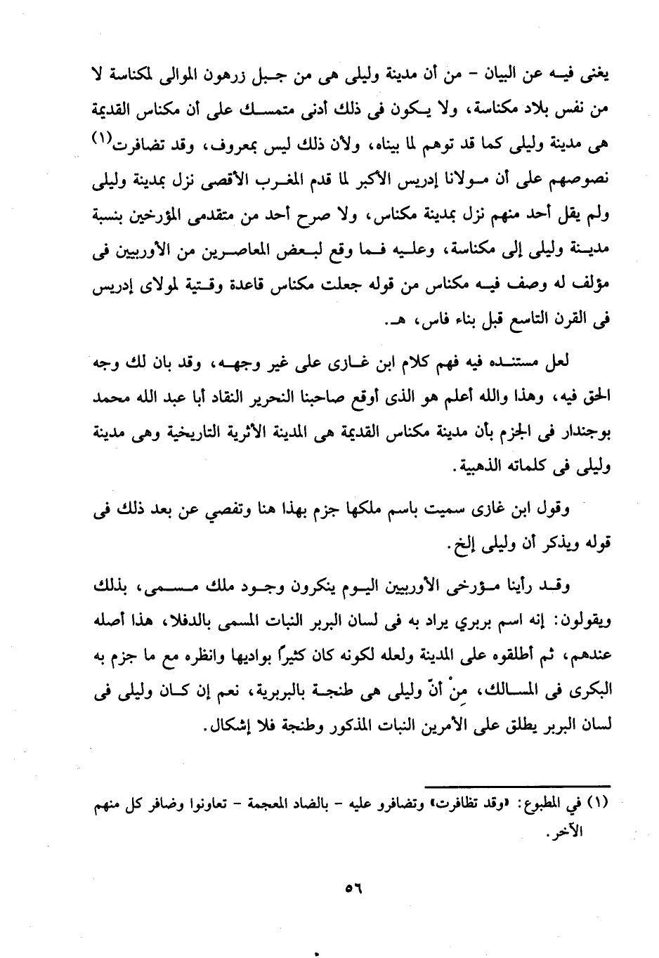 لعل مستنده فيه فهم كلام ابن غازى على غير وجهه، وقد بان لك وجه الحق فيه، وهذا والله أعلم هو الذى أوقع صاحبنا النحرير النقاد أبا عبد الله محمد بوجندار في الجزم بأن مدينة مكناس القديمة هى المدينة الأثرية التاريخية وهى مدينة وليلى في كلماته الذهبية.