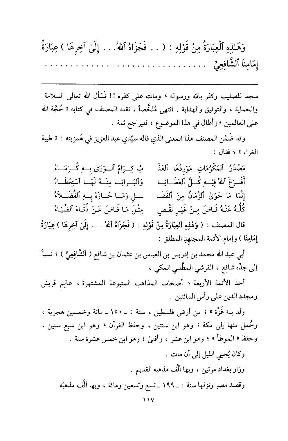 وهذه العبارة من قوله: (.. فجزاه الله ... إلى آخرها) عبارة إمامنا الشّافعيّ ...